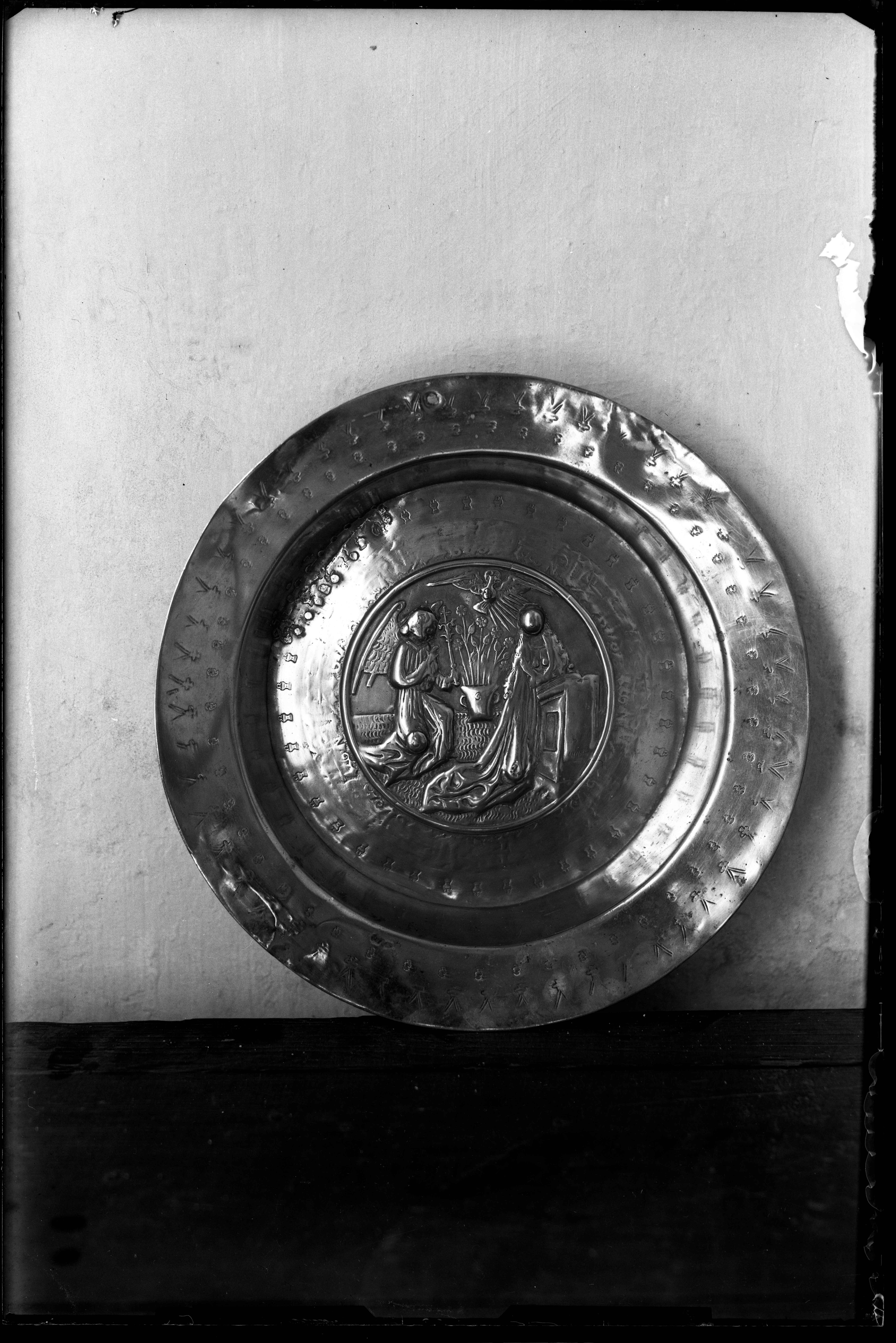 Jämaja Kolmainu kirik. Ristimisnõu (graveeritud vaagen)