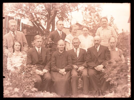 Jaan Kalviste tundmatute kaaslastega aias. Grupipilt