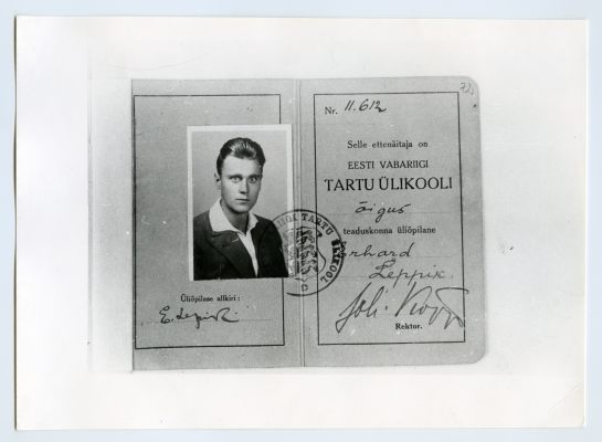 [Tartu ülikooli üliõpilase Erhard Lepiku legitimatsioonikaart]