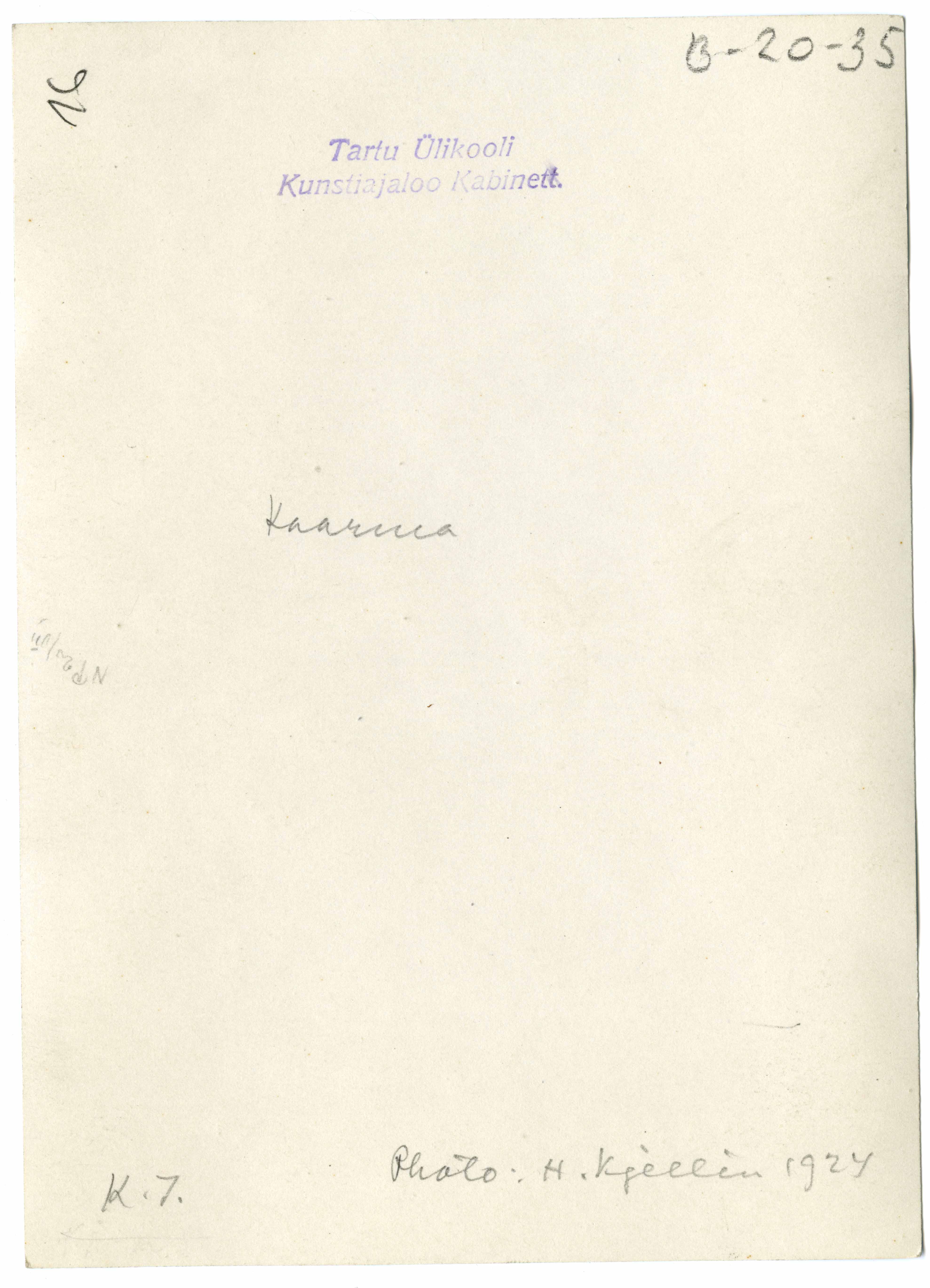 | dc.description | Tekst foto tagaküljel: Kaarma. Photo: H. Kjellin 1924. Tempel: Kabinett | et |