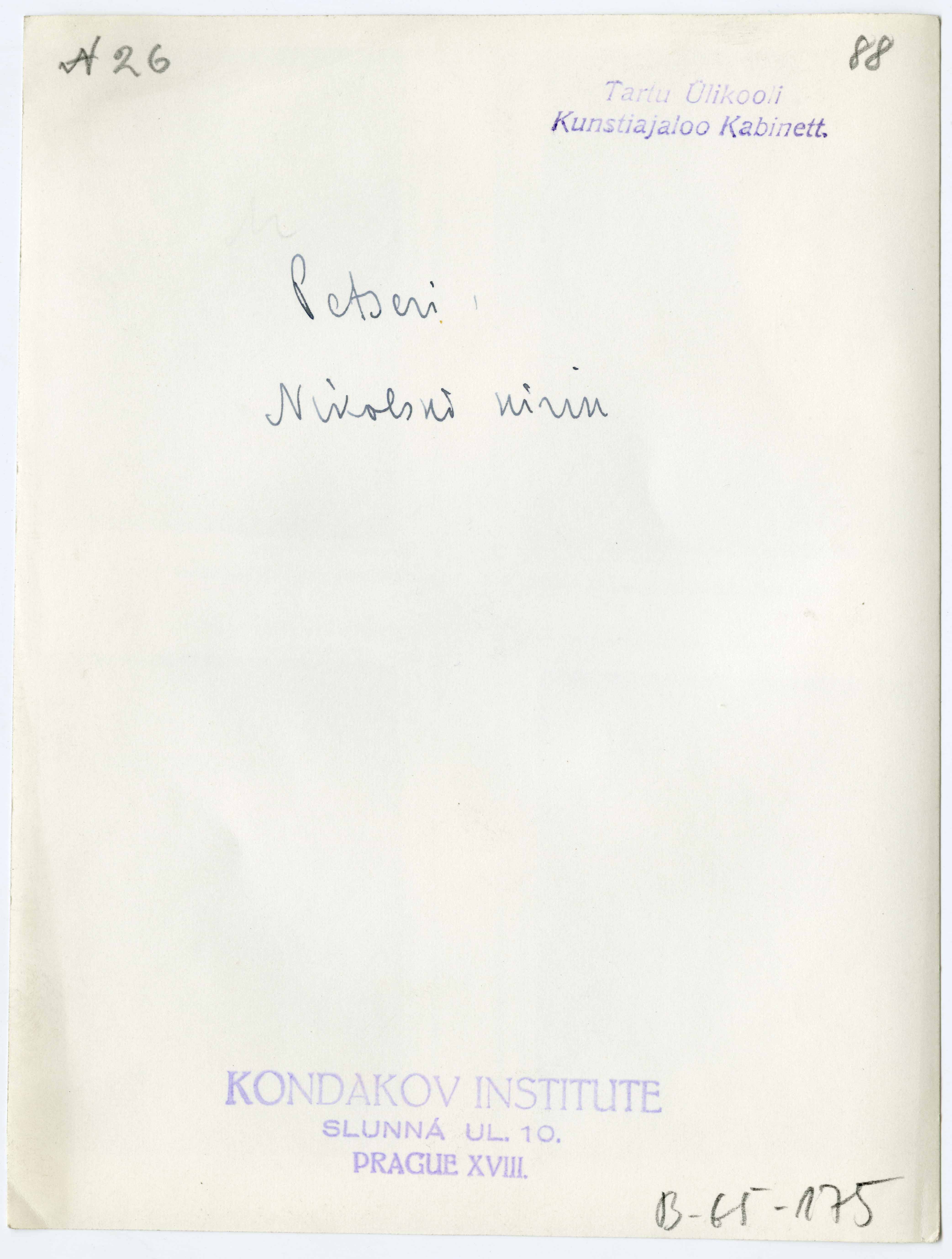 | dc.description | Tekst foto tagaküljel: Petseri. Nikolski kirik. N26. Templid: Kondakov; Kabinett | et |