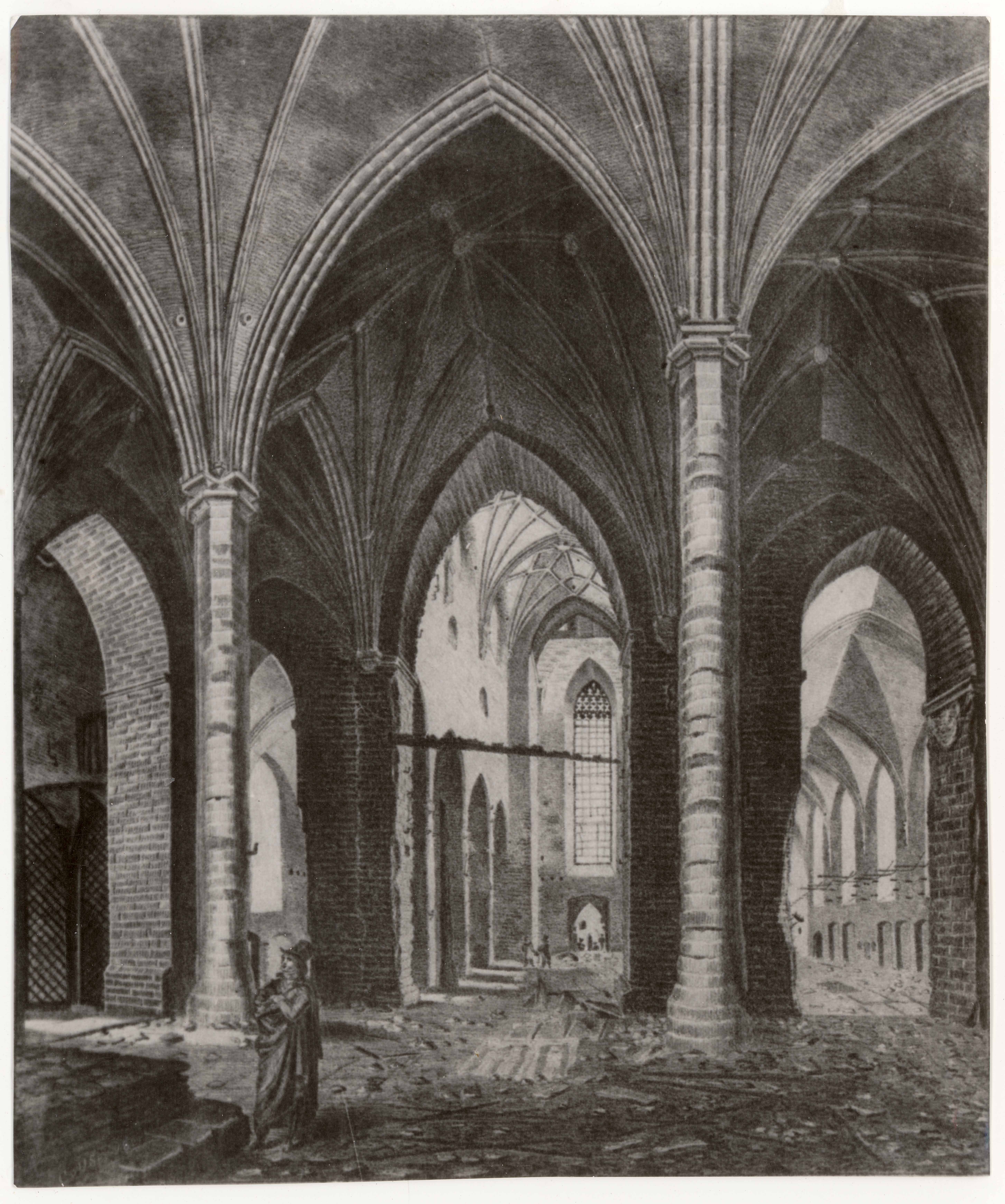 Tallinn. All-linn. Oleviste kirik. Vaade koorist W-sse pärast põlemist 16. juunil 1820. K. F. Ungern-Sternberg. Litograafia. 1821