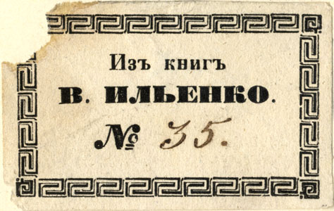 | dc.description | Nelinurkses ornamenteeritud raamistuses: ИЗЪ КНИГЪ / В. ИЛЬЕНКО. / № | |