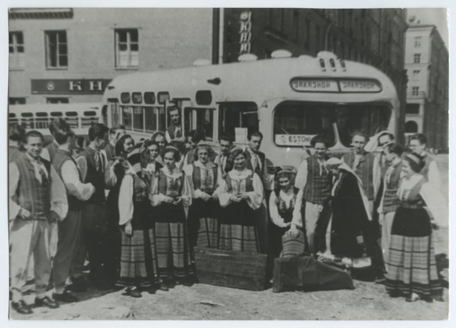 Tartu ülikooli rahvakunstiansambel Moskvas ülemaailmsel noorsoofestivalil juulis 1957