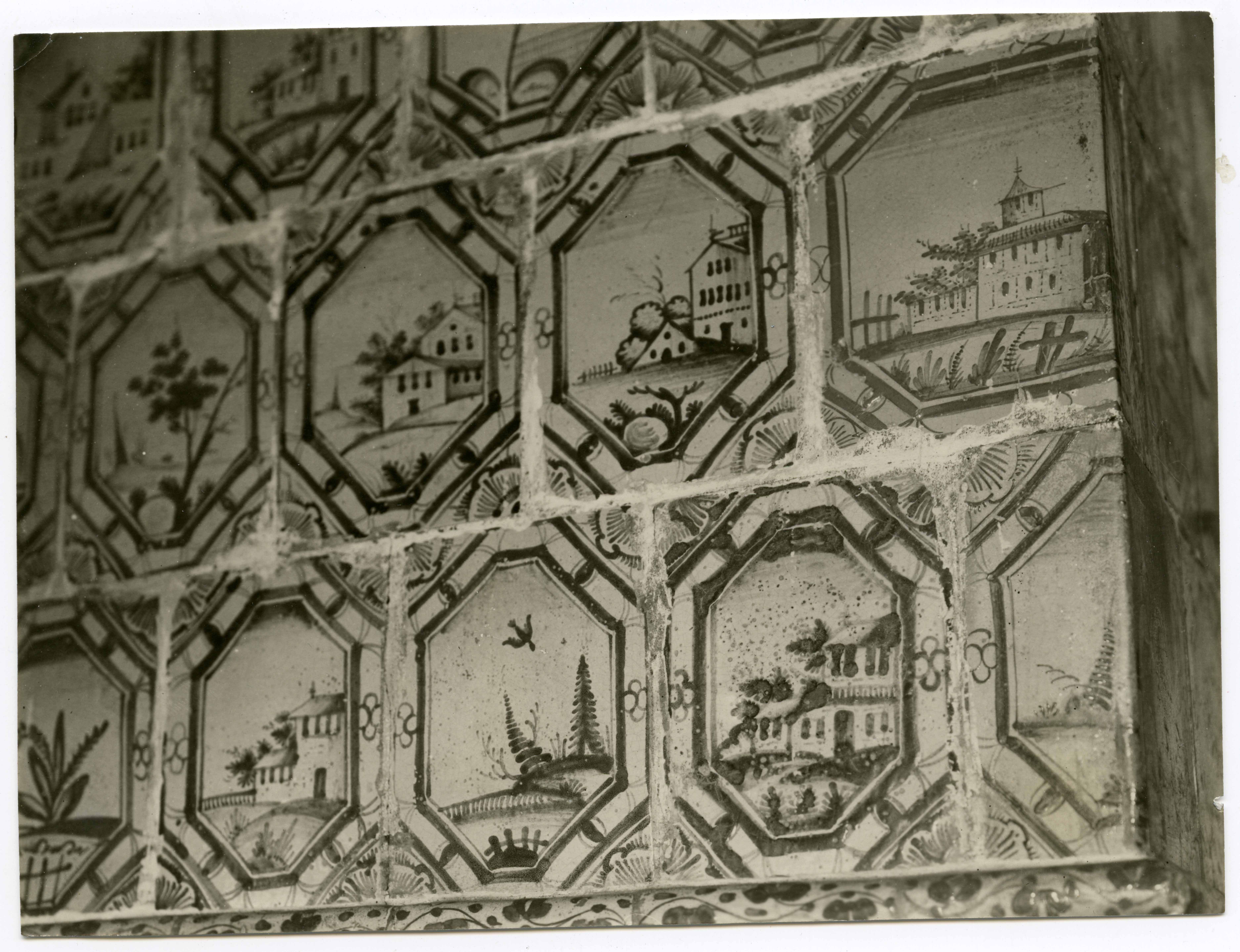 Hollandi fajanss-ahi. Kahhelkivid (17. saj lõpp). Detail. Tuba nr 7. Narva Linnamuuseum