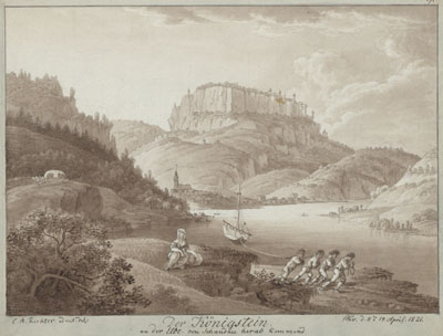 Der Königstein an der Elbe von Schandau herab kommend