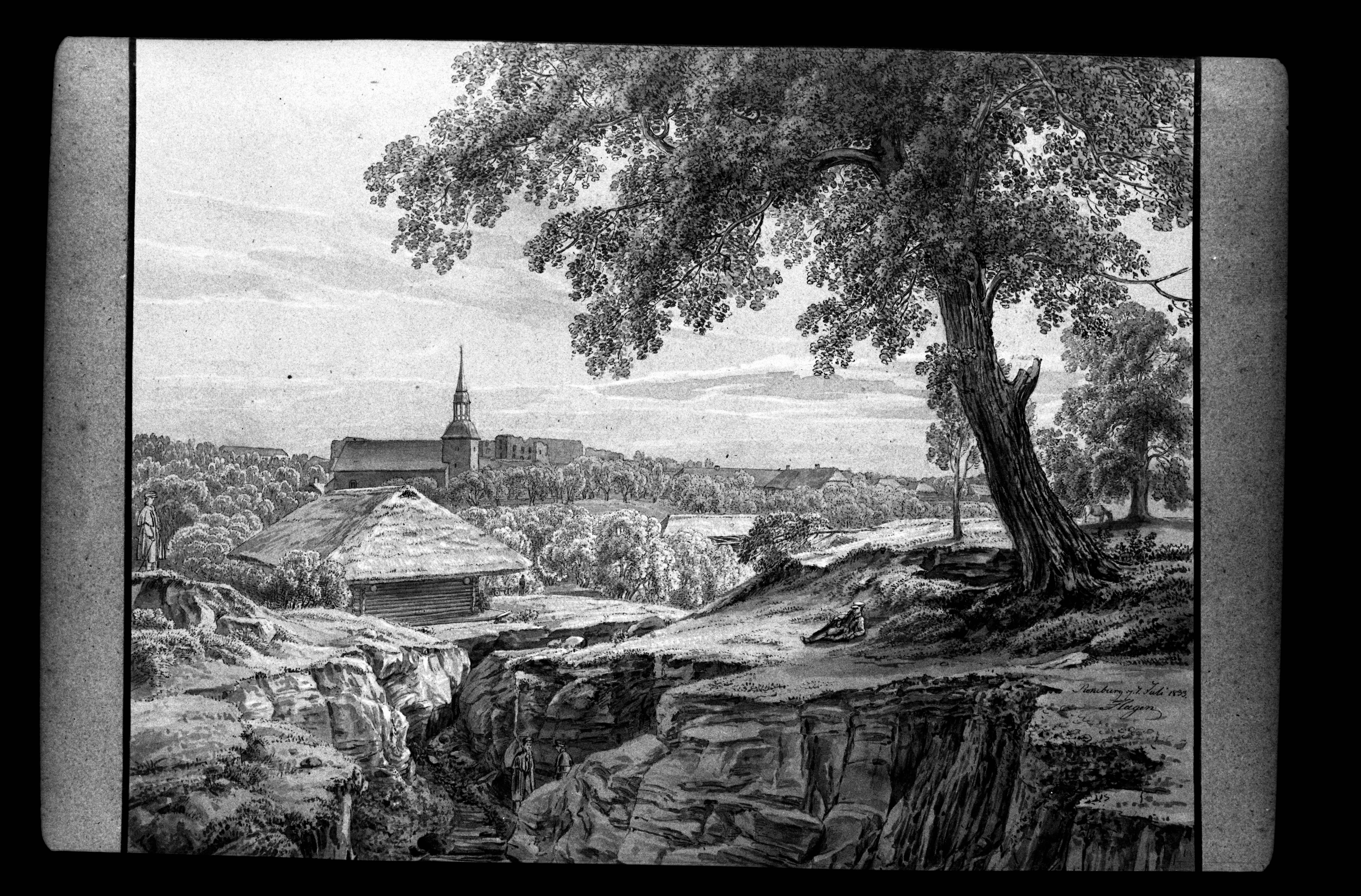 Tekst negatiivi ümbrikul: A. Hagen. Roneburgi vaade. Geol. inst. Tempel: Instituut