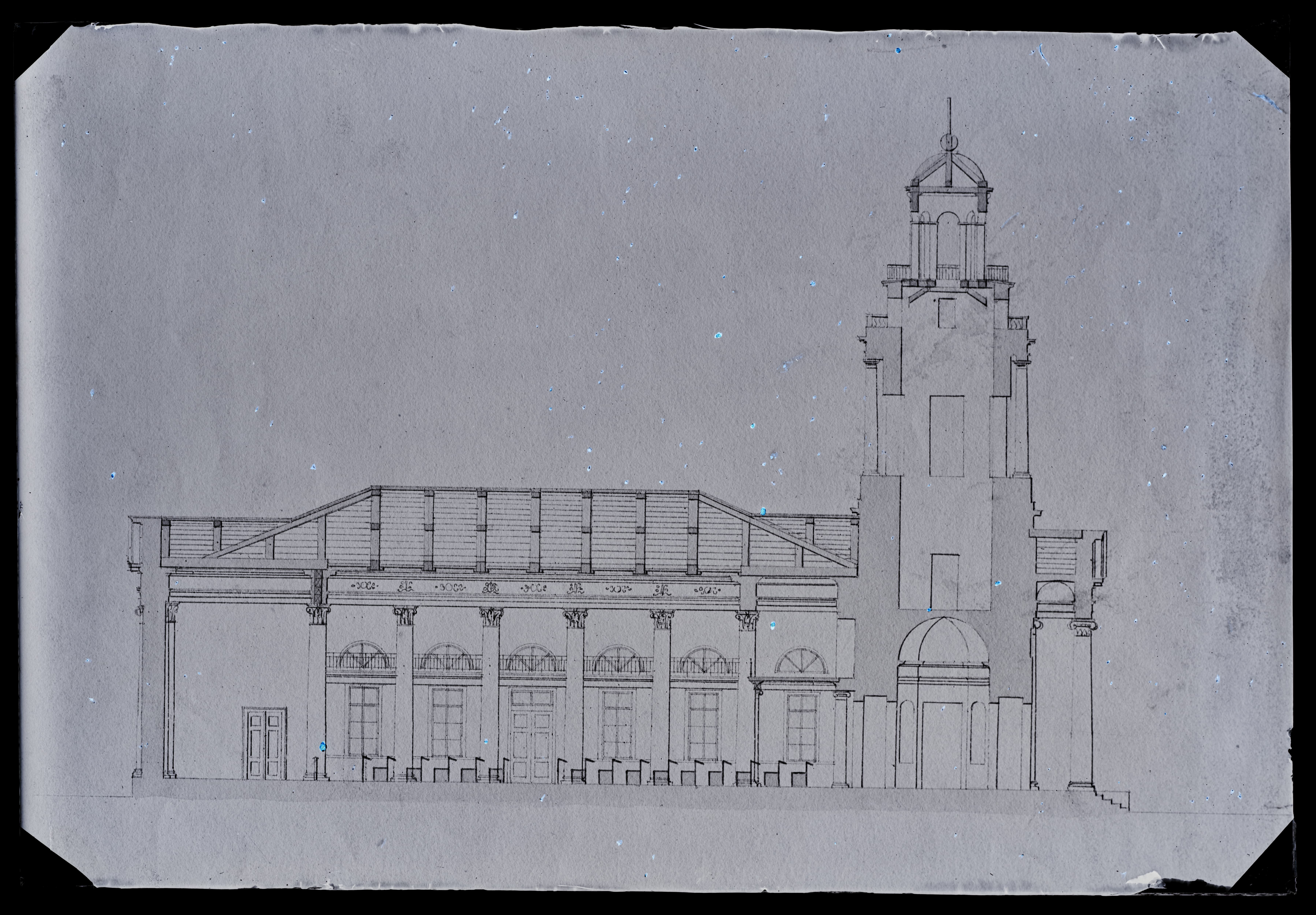 Tekst negatiivi ümbrikul: Ülik. kiriku kavand a. 1836 Põikilõige. Foto Lomp 1928.