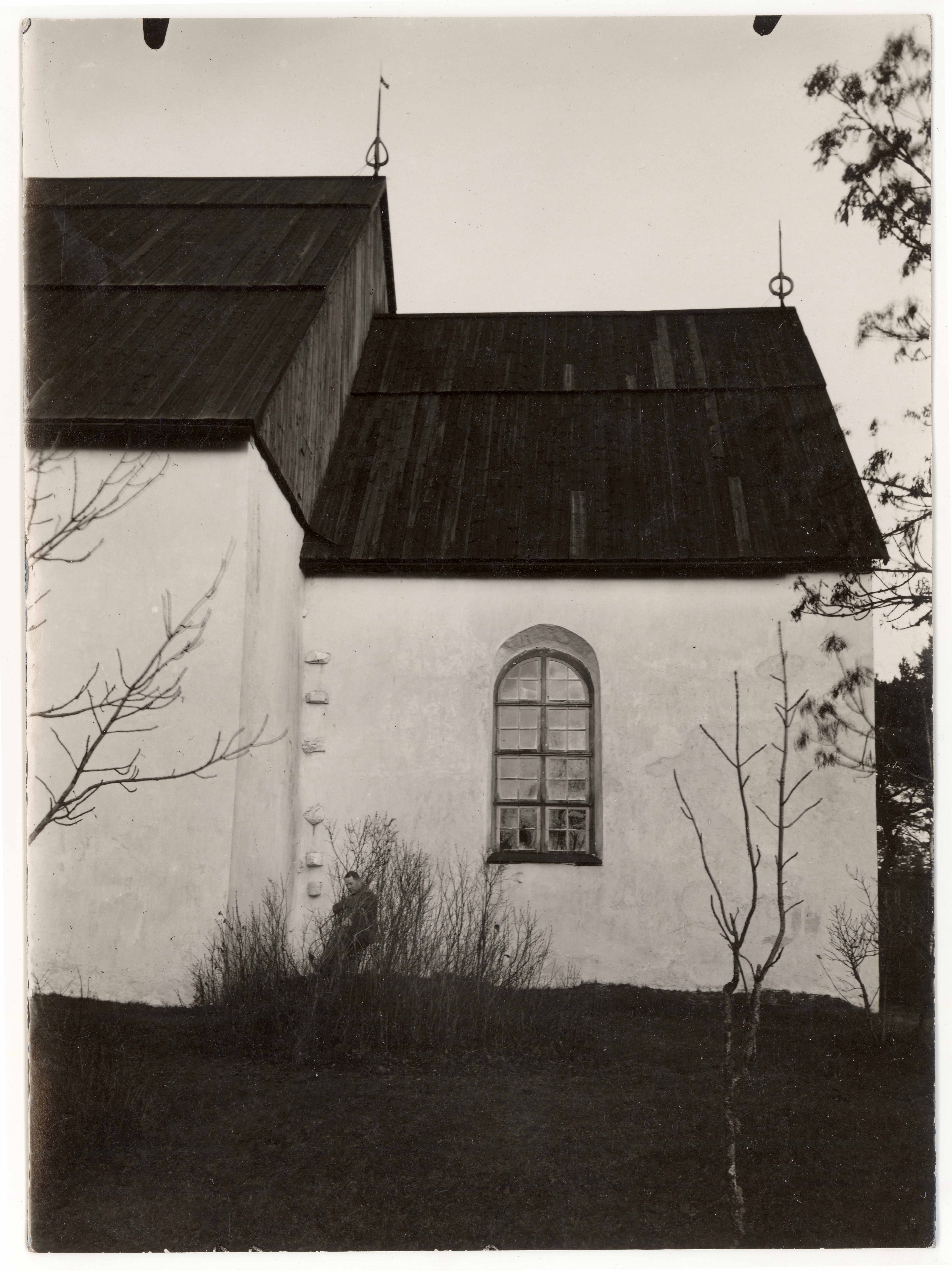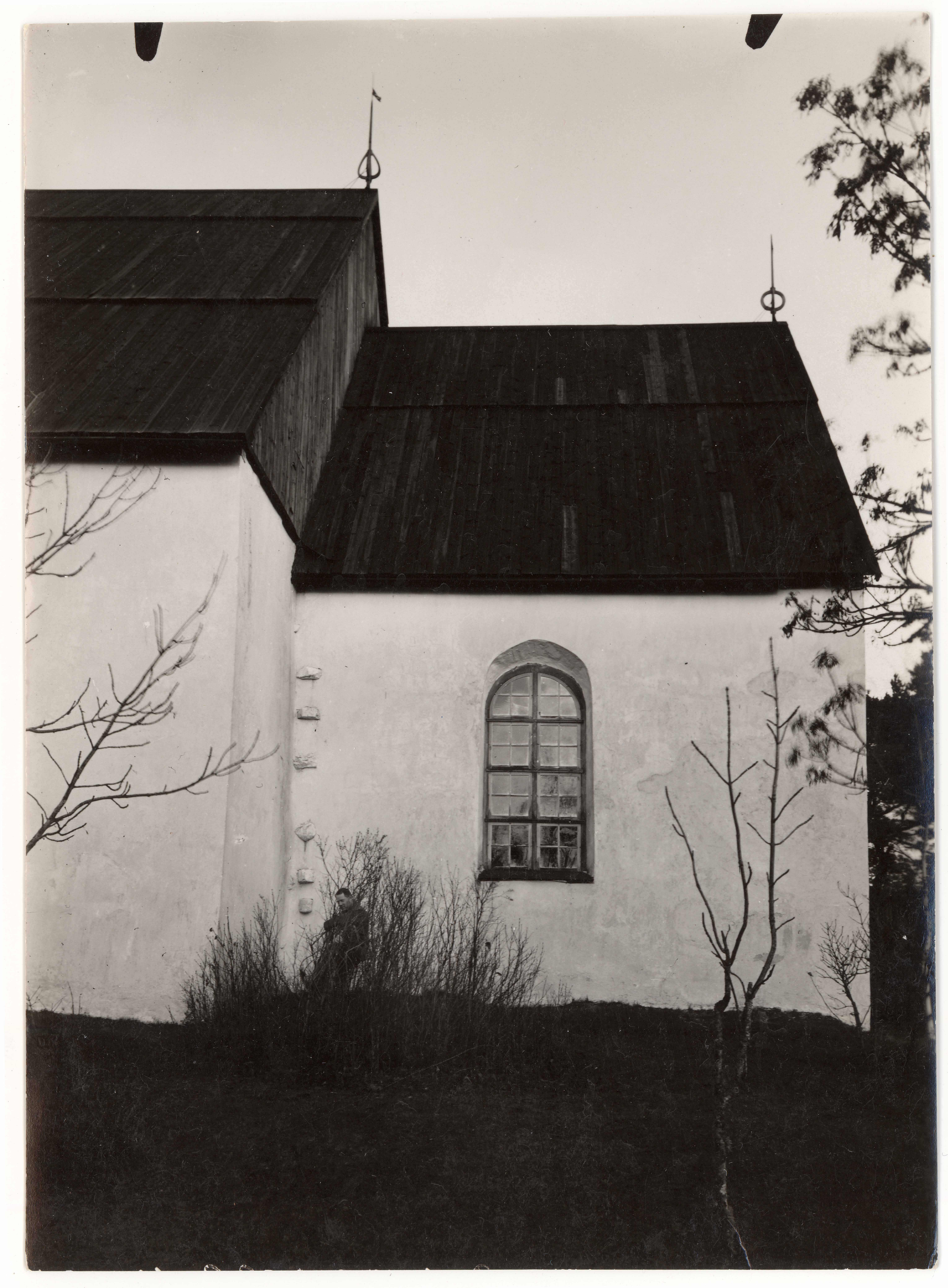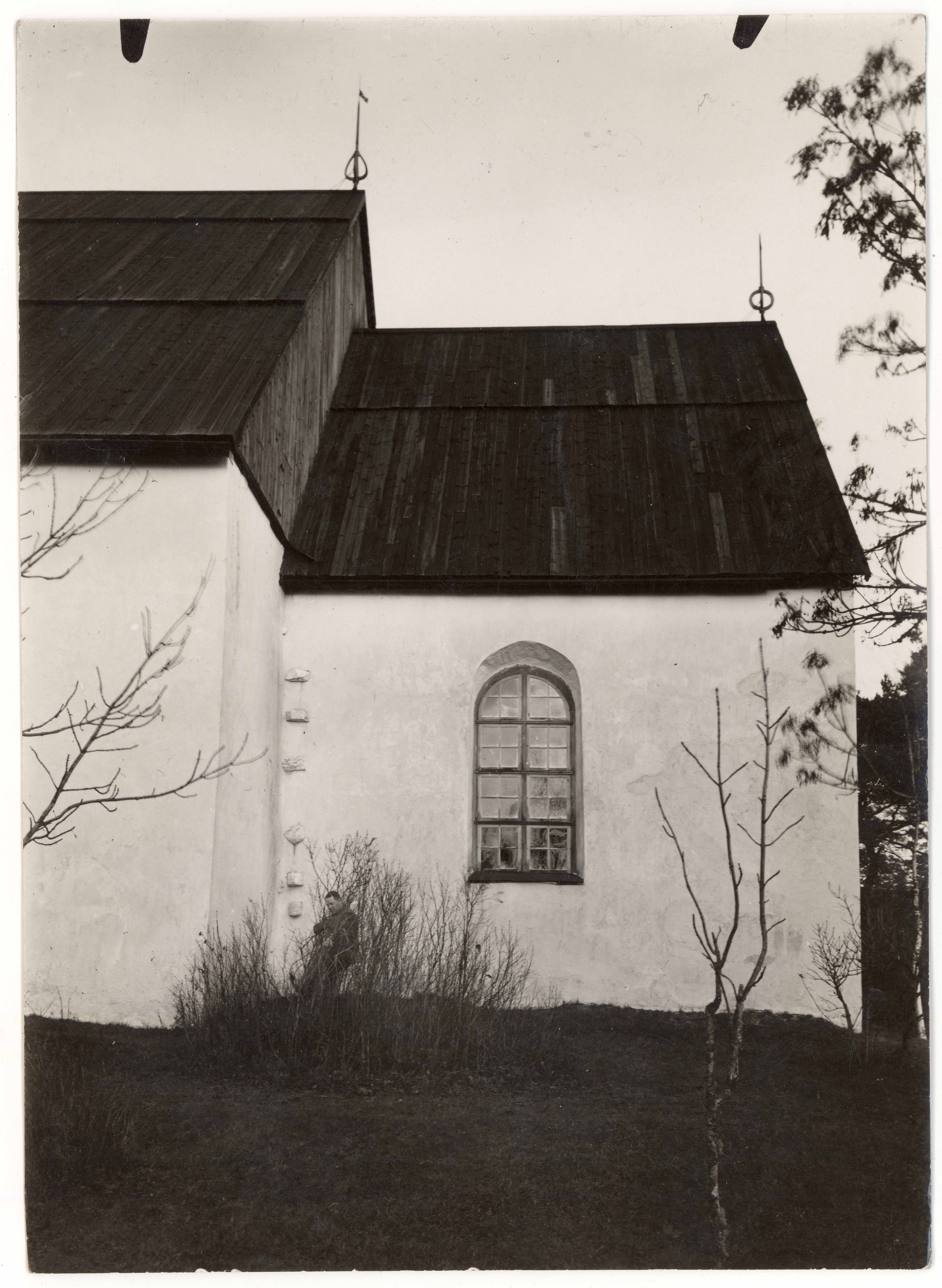 Tekst negatiivi ümbrikul: Vormsi kirik. Kooriruum väljast. 212-12. Templid: Kabinett; Grünthal 1933