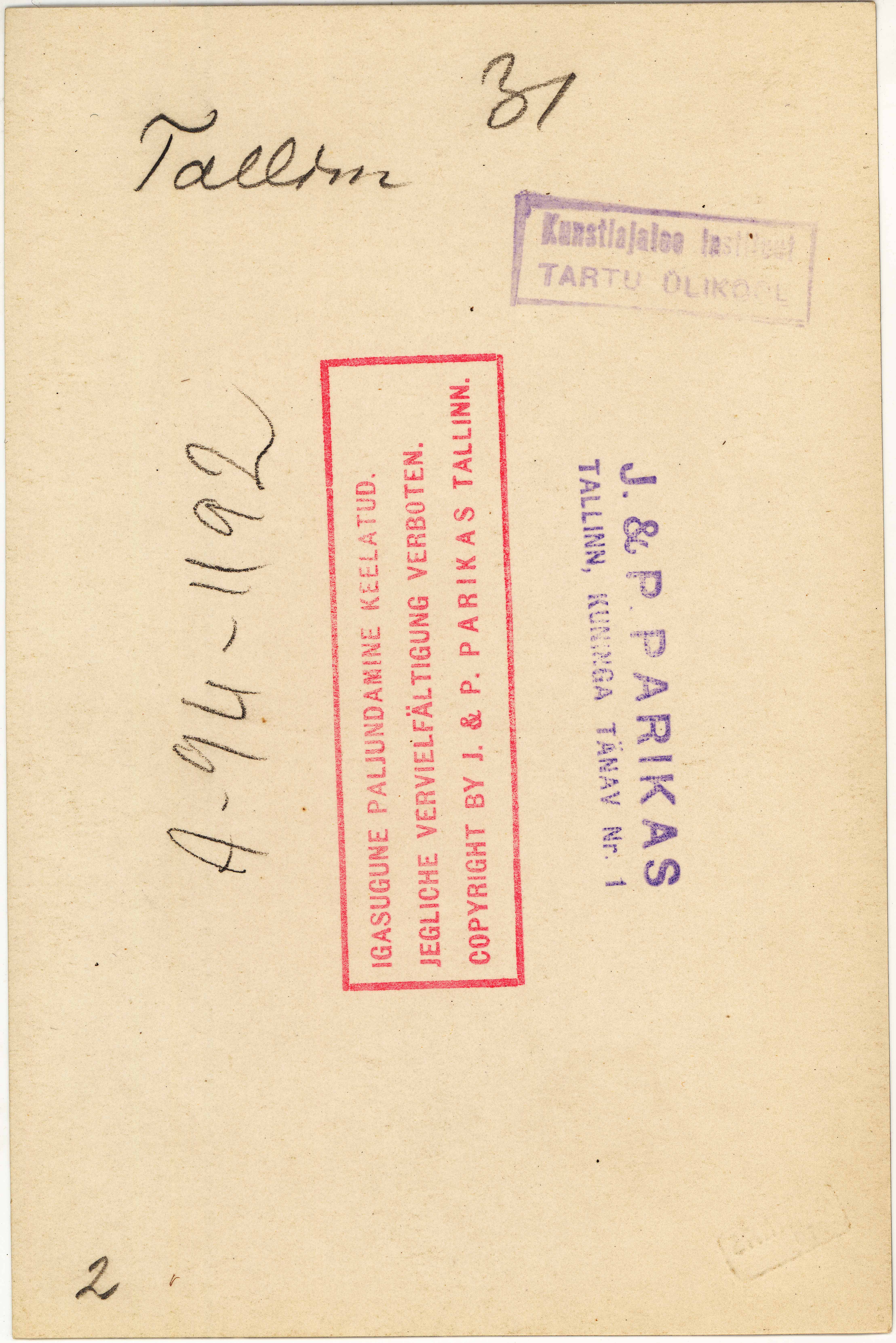 Tekst foto tagaküljel: 31 Tallinn, Müürivahe tän. Templid: J&P; Instituut