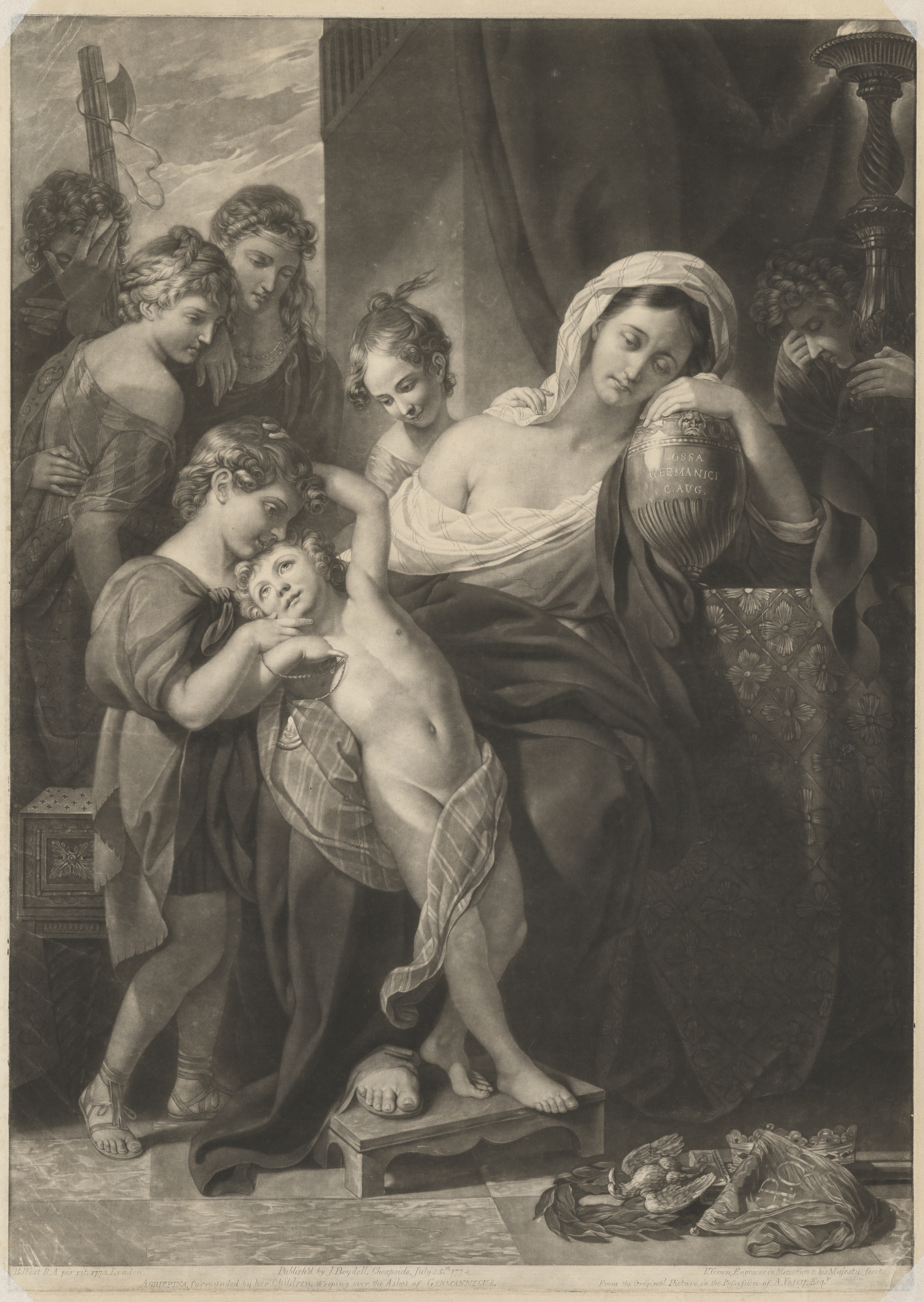 Agrippina, surrounded by her children weaping over the ashes of Germanicus