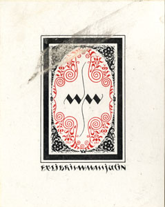 Nelinurkses raamistuses ovaalne ornament, mille keskel initsiaalid W M. Joonises all: EX-LIBRIS W. MASSJUTIN;"Иваск