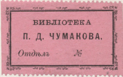 Nelinurkses raamistuses: БИБЛIОТЕКА / П. Д. ЧУМАКОВА. / Отдѣлъ №