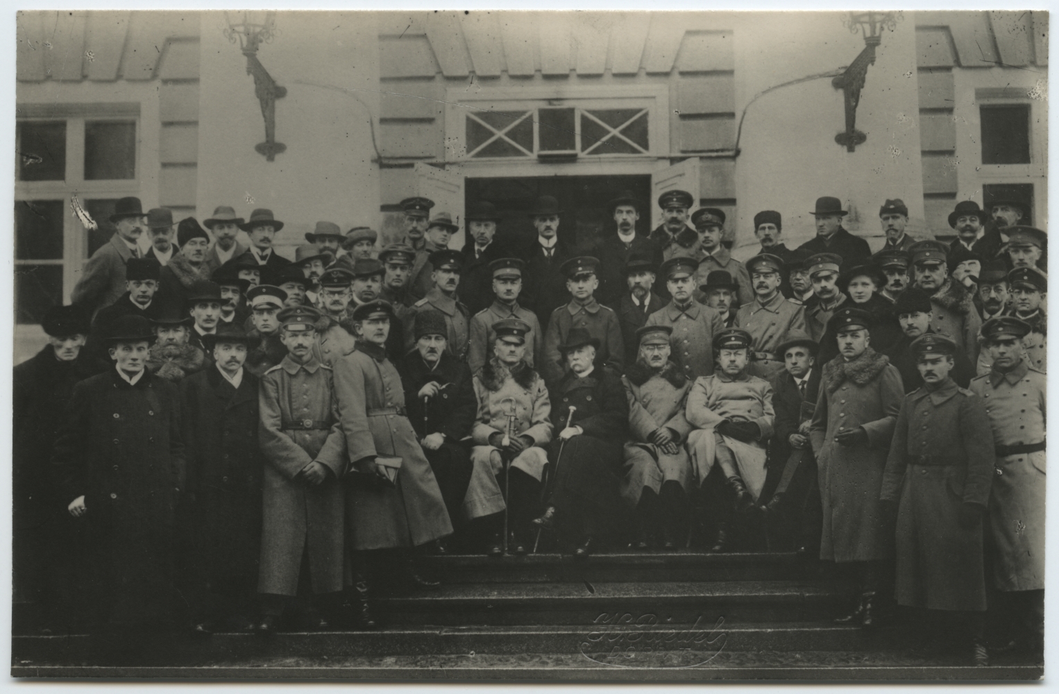 Tartu ülikooli õppejõud 1918. a. sügissemestril peahoone ees. Grupipilt