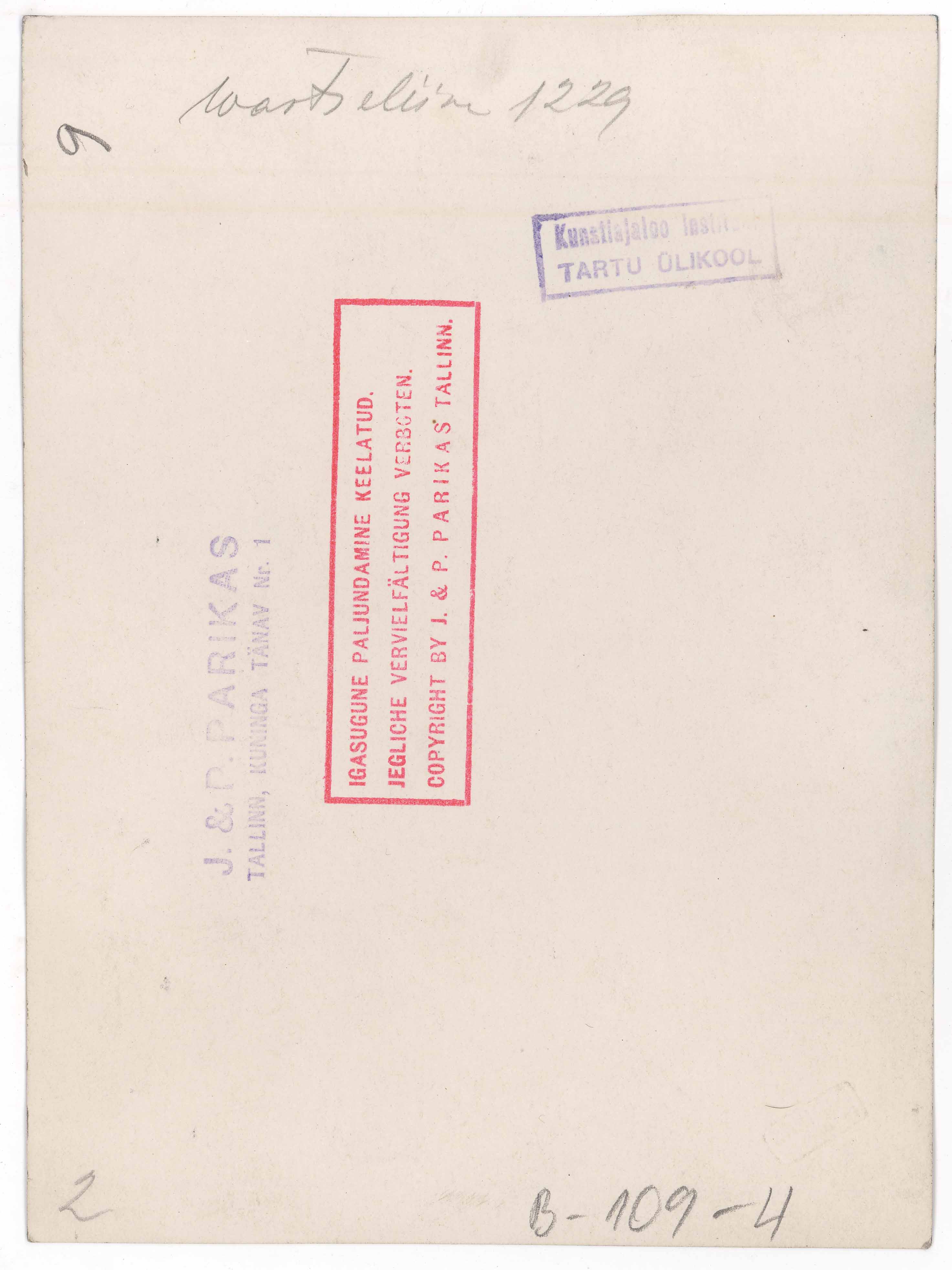 Tekst foto tagaküljel: Wastseliina 1229. Templid: J&P; Instituut