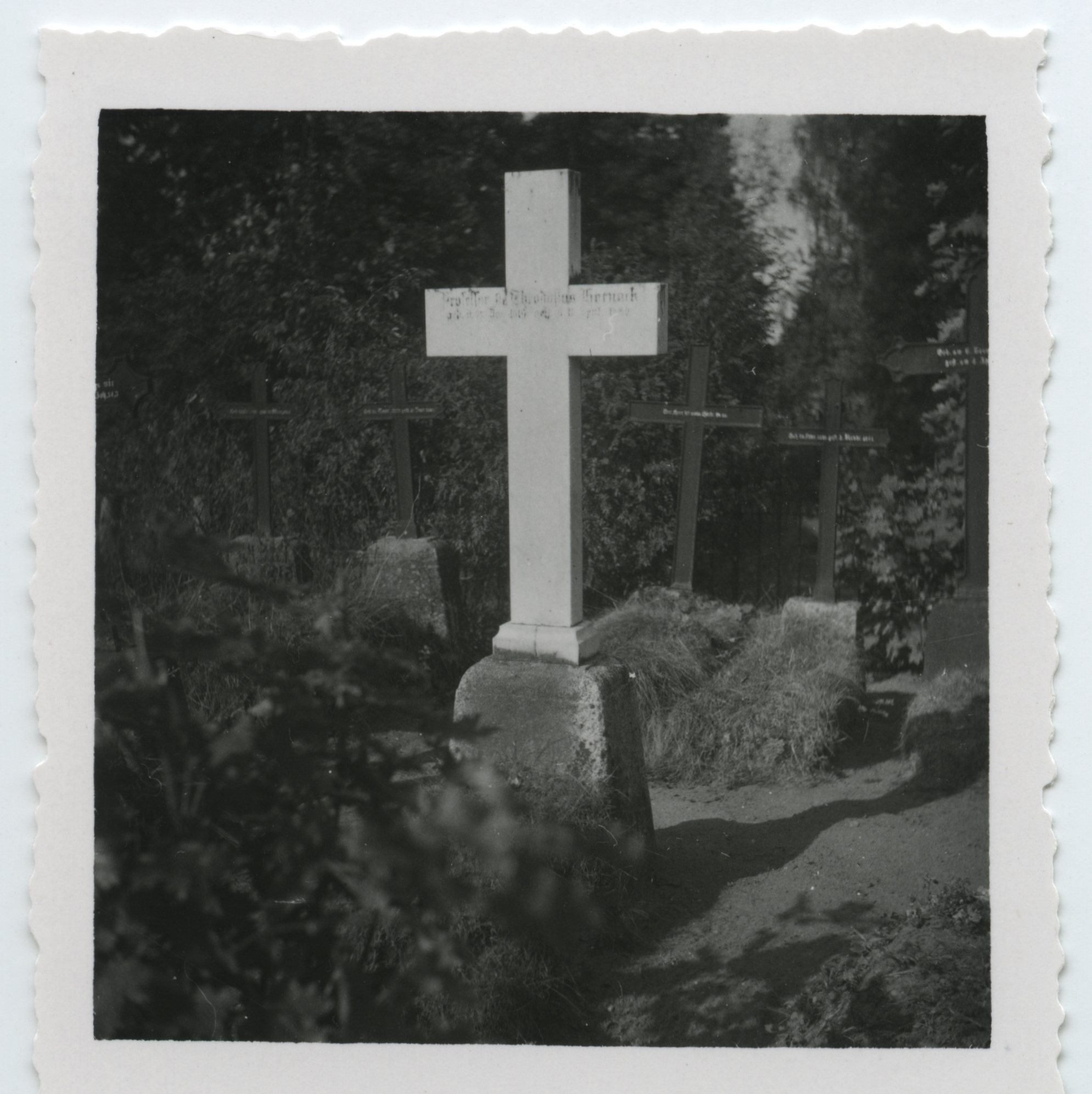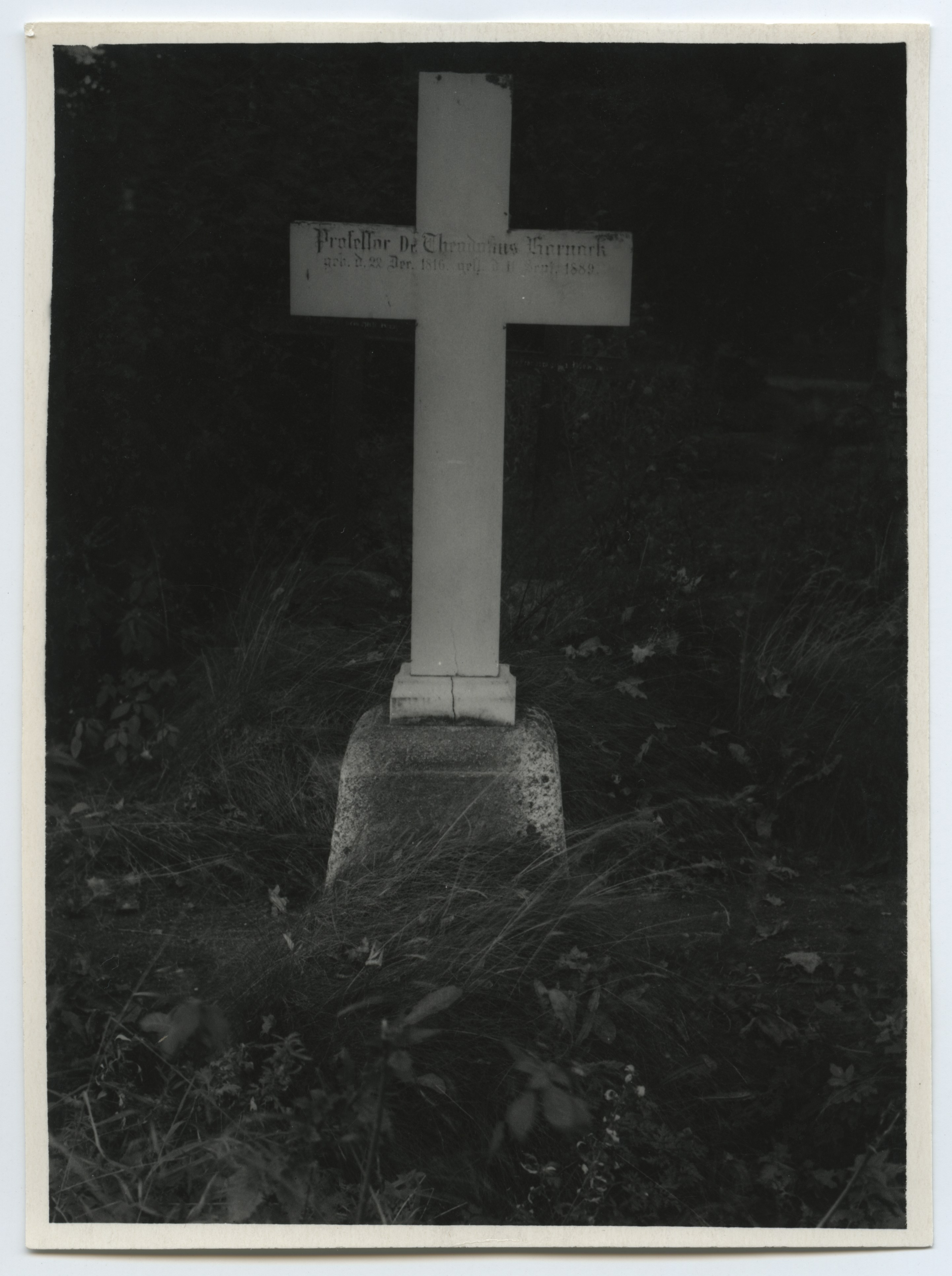 135. Ees Theodosius Harnacki haud (valge rist), taga vasakul [Otto M o r i t z Ludwig?] von Engelhardti (1779-1842) haud. Foto: Herbert Normann, [1940-ndad]; 136. Theodosius Harnacki haud. Rist pikali. Foto: Herbert Normann, [1950-ndad]; 137. Theodosius Harnacki haud. Foto: Eduard Selleke, [1950-ndad]; 138. Theodosius Harnacki haud. Foto: Herbert Normann, [1950-ndad]