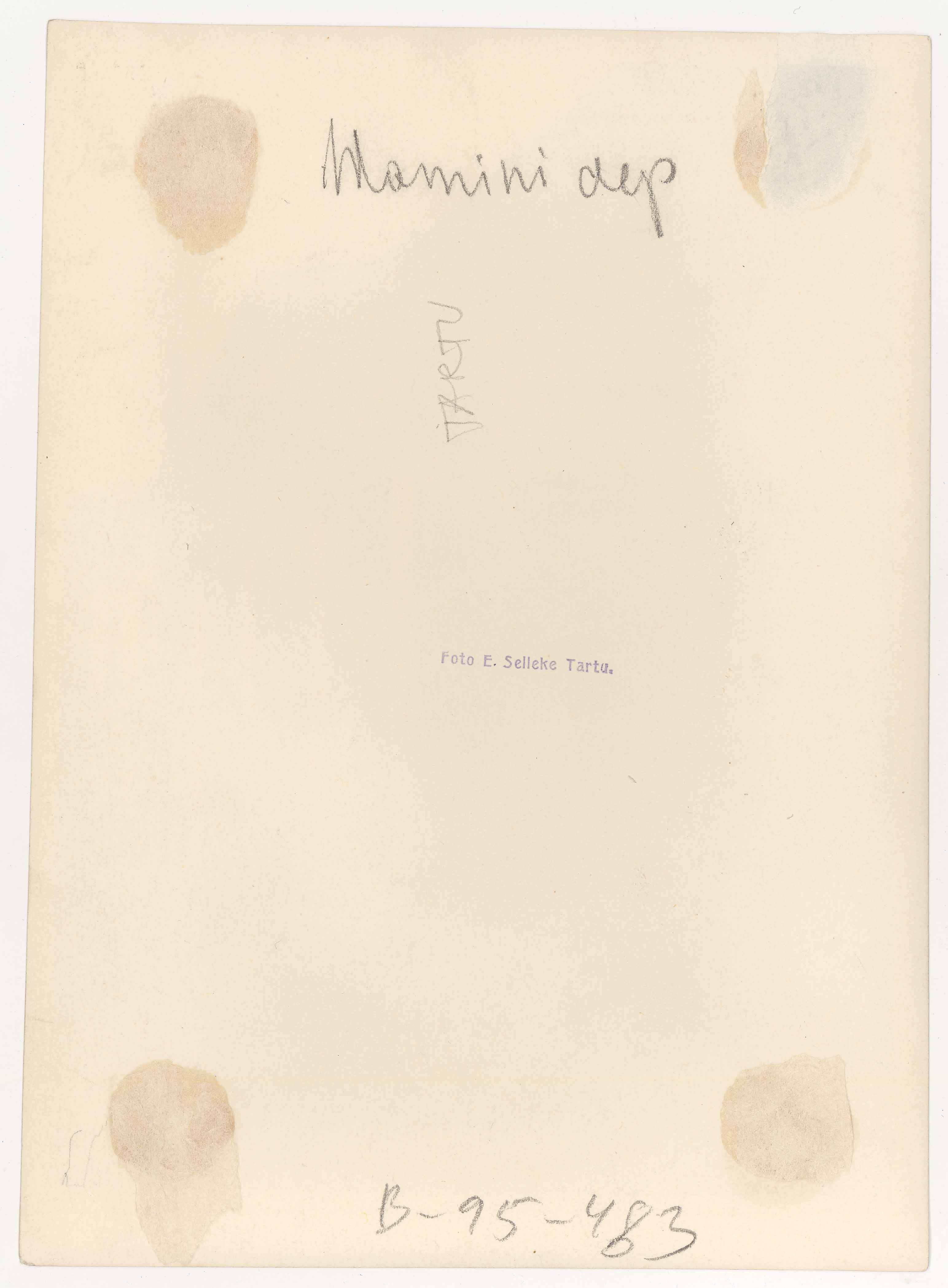 Tekst negatiivi ümbrikul: Hamini dep. Tartu, Lai t. 36. Foto: E. Selleke. 1929