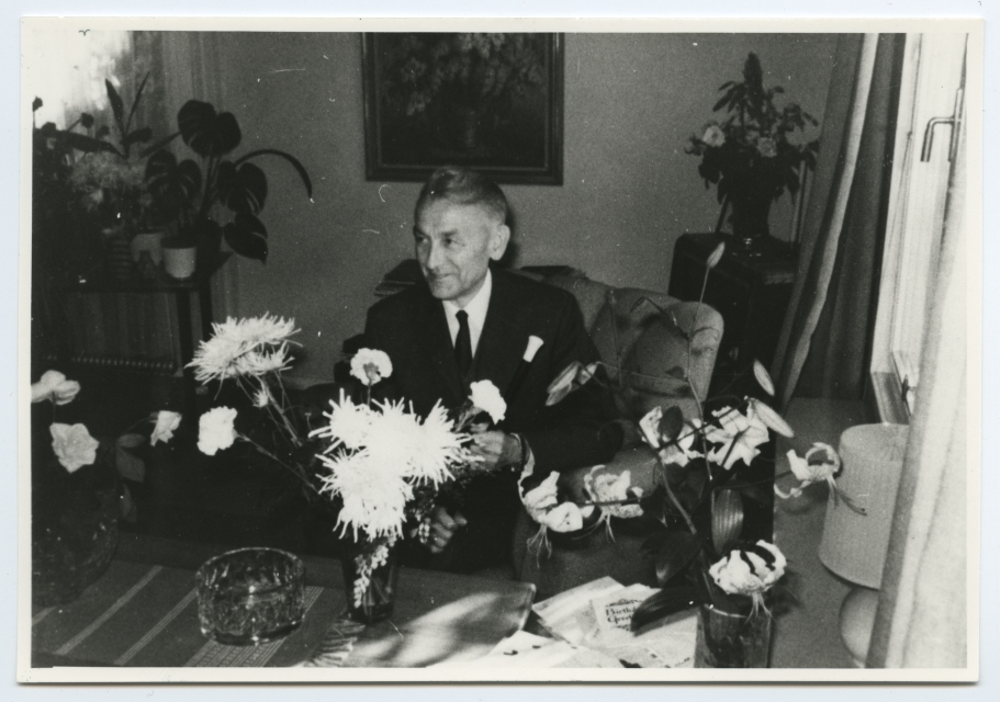 Bernard Kangro kodus laua ääres istumas oma 60. sünnipäeval