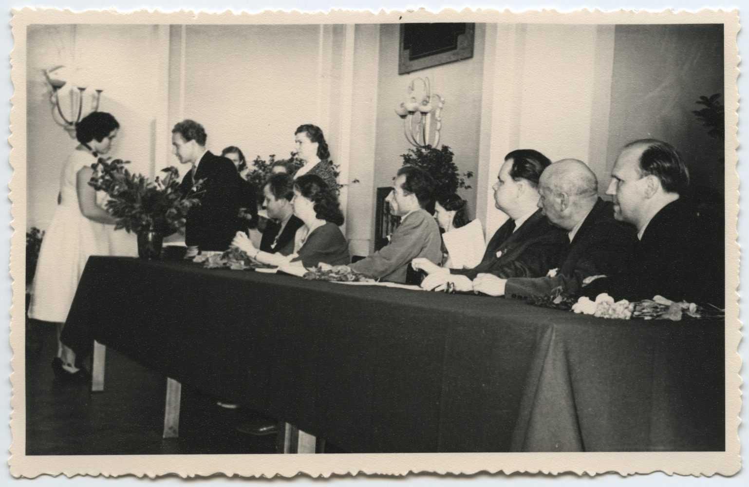 Vabariikliku Tartu Meditsiinilise Keskkooli lõpuaktus Eesti Põllumajanduse Akadeemia aulas u. 1959-1960
