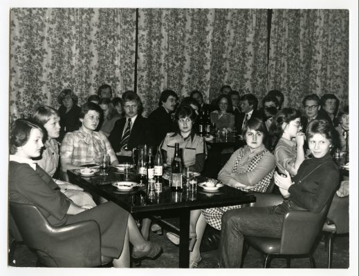 Vastuvõtt Tartu ülikooli õpperühmadevahelise konkurssülevaatuse võitjatele ülikooli uues kohvikus 1979. a.