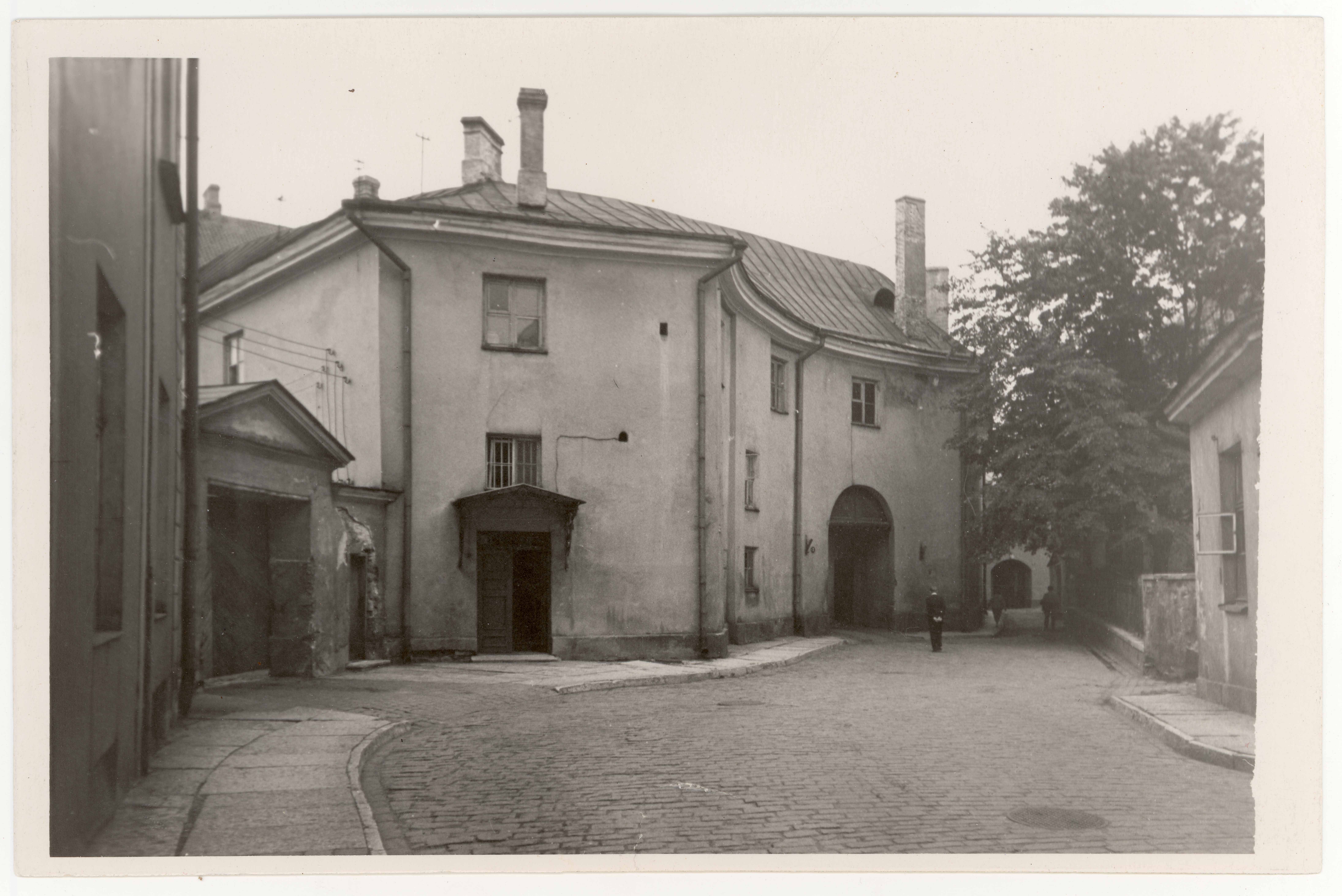 Tallinn. Toompea. Rahukohtu t. 3, nn. Stenbocki maja kõrvalhoonete vaade Rahukohtu tänavalt NO suunas