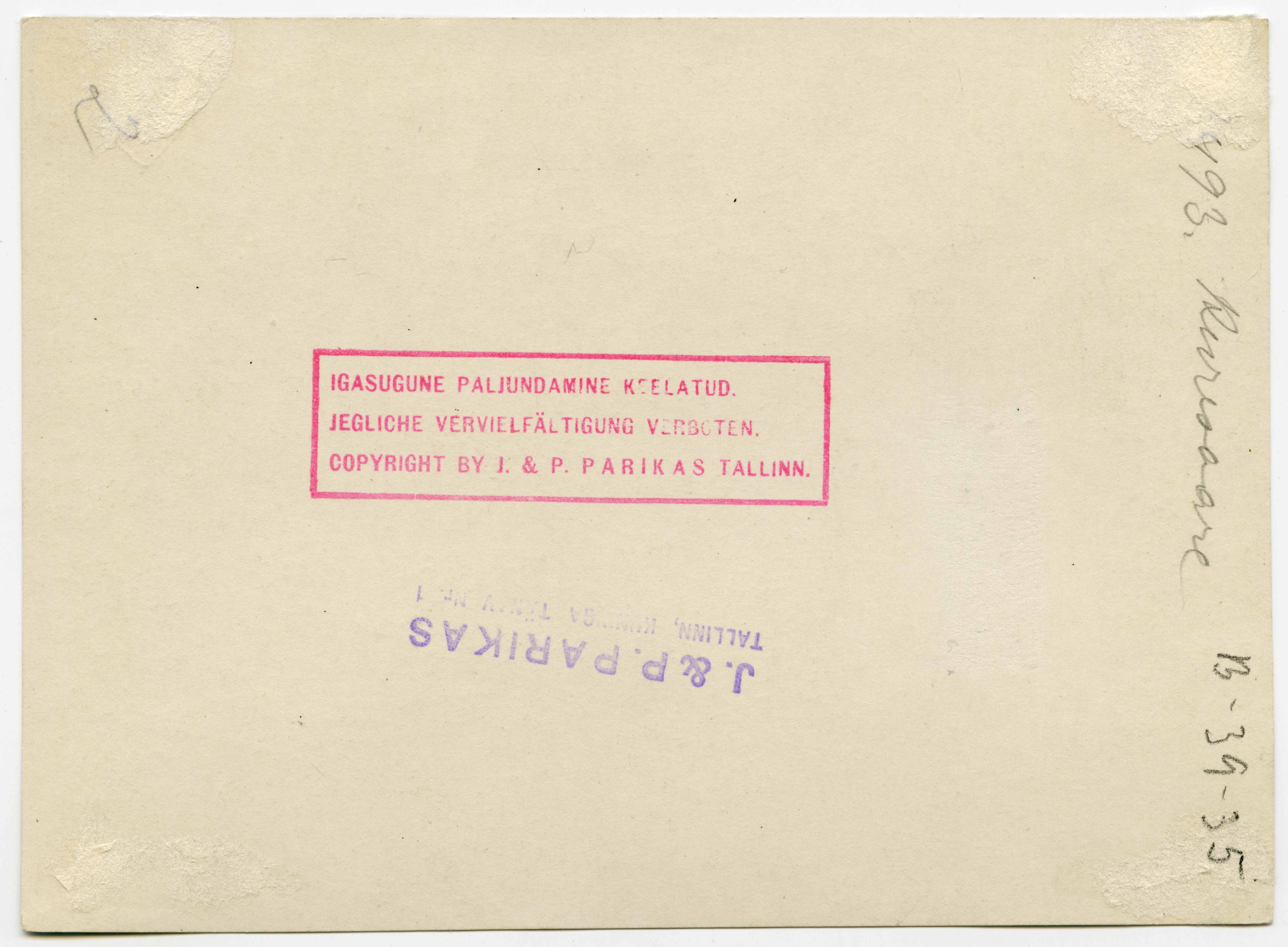 Tekst foto tagaküljel: 3493 Kuressaare. Templid: J&P