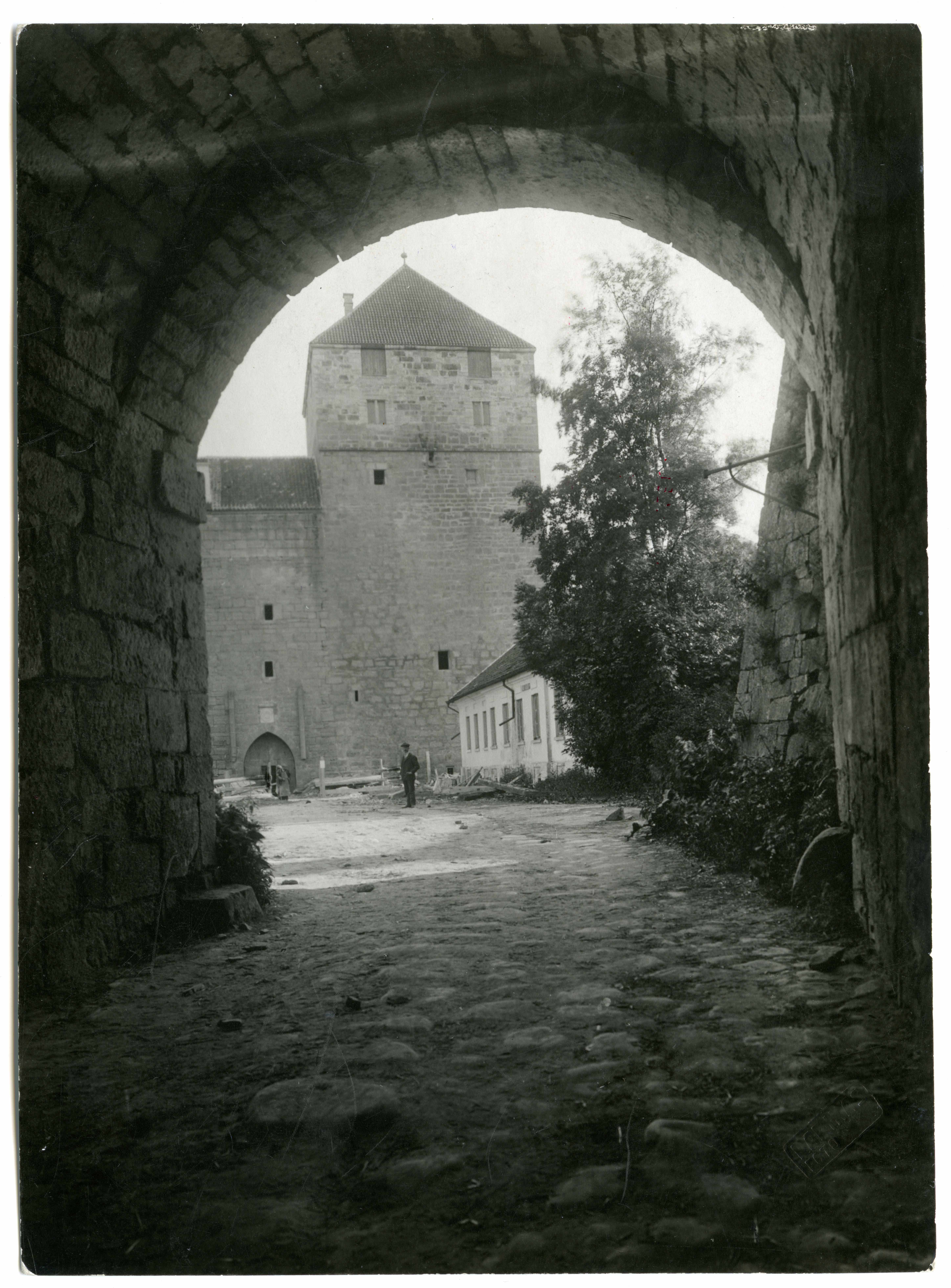 Kuressaare linnus. NW-kaitsetorni vaade ringmüürkastelli N-väravakäigust
