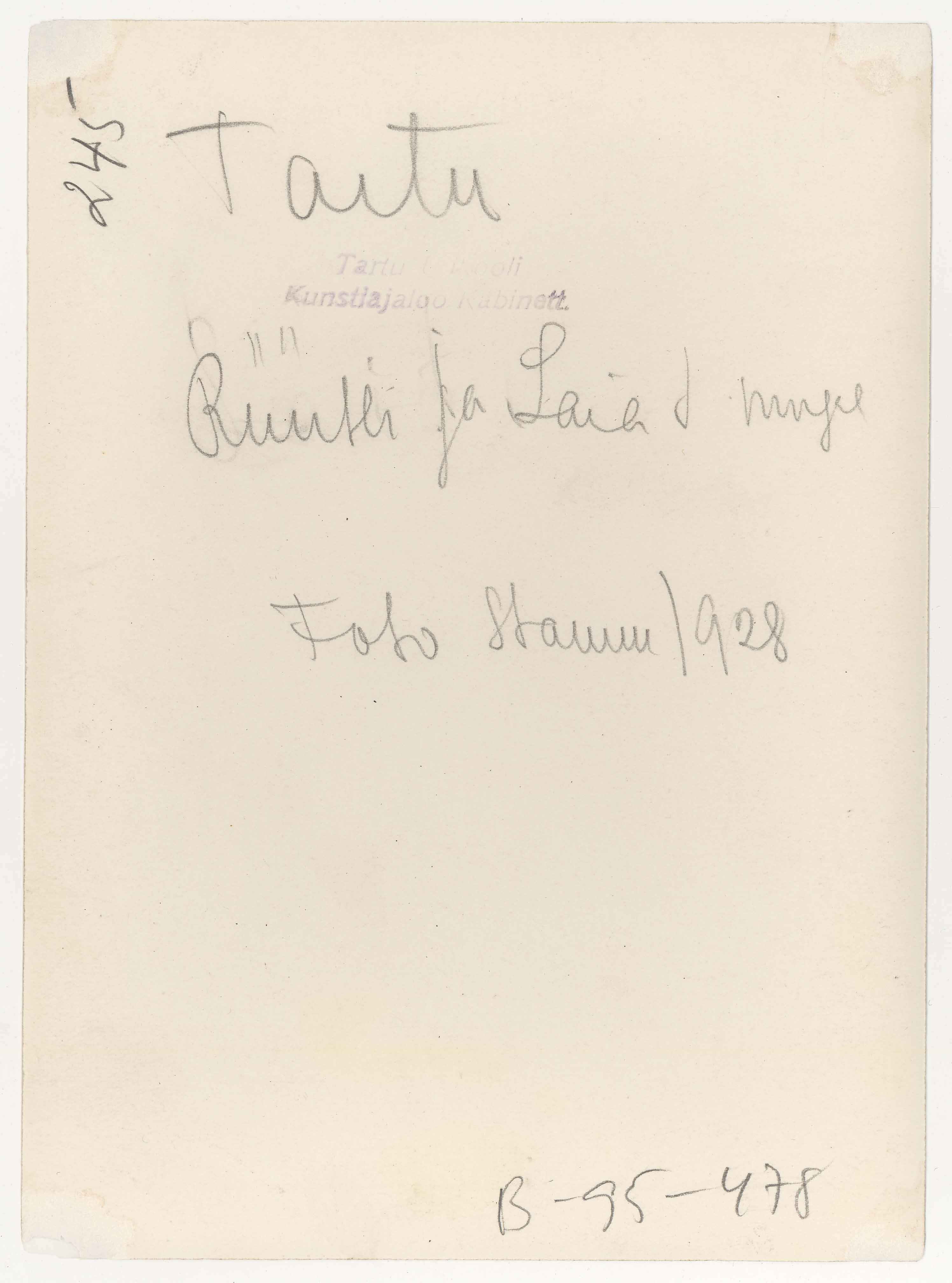 Tekst foto tagaküljel: 245. Tartu. Rüütli ja Laia t nurgal. Foto Stamm 1928. Tempel: Kabinett