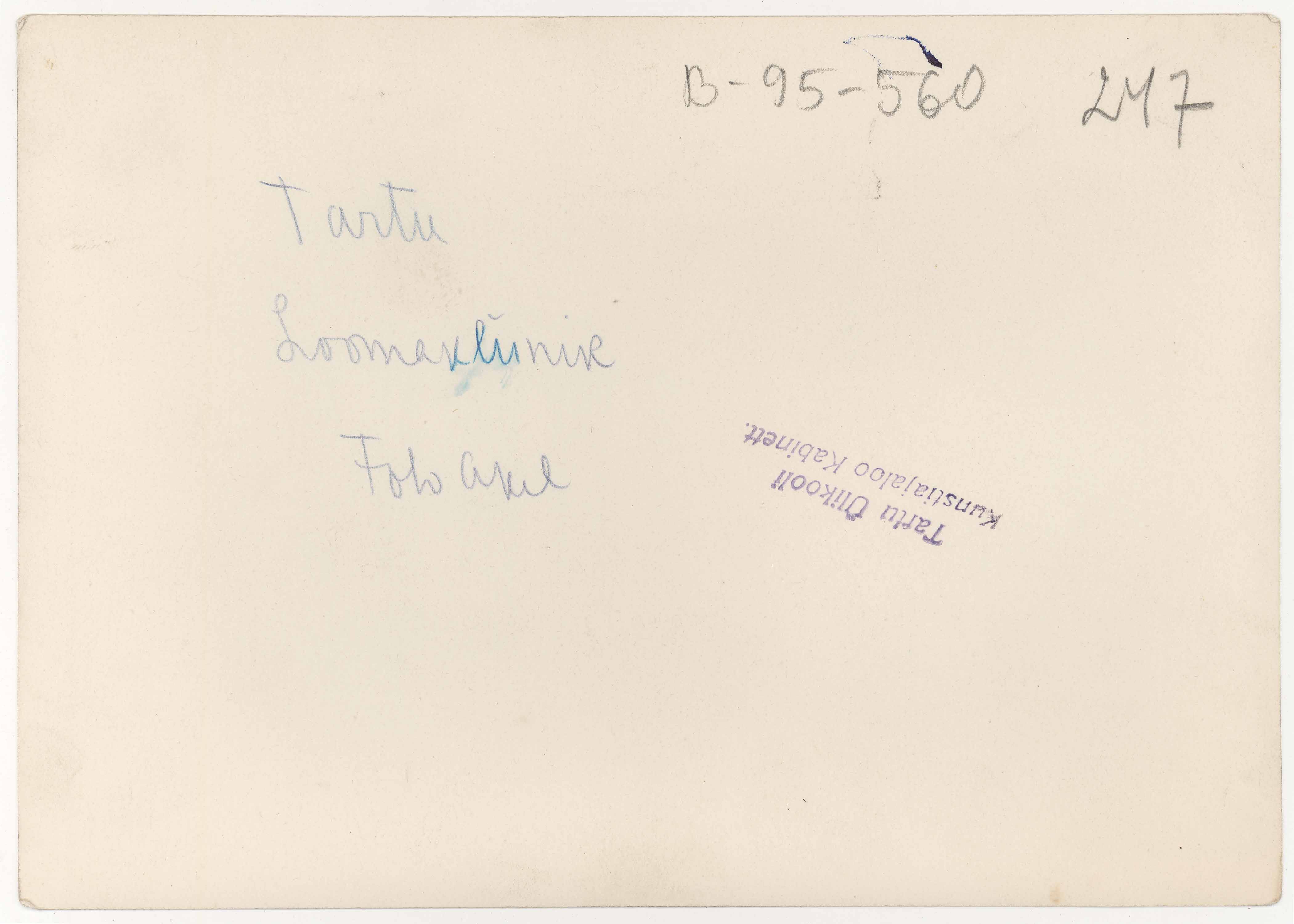 Tekst foto tagaküljel: Tartu Loomakliinik. Foto Akel. Templid: Kabinett