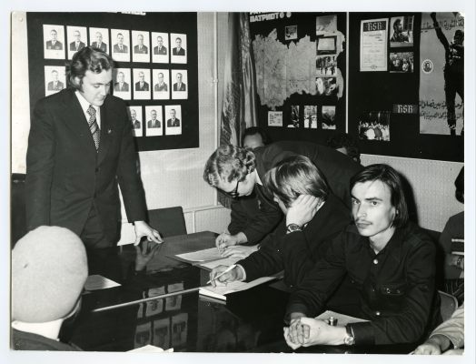 ÜLKNÜ 60. aastapäeva raporti allkirjastamine Tartu Riikliku Ülikooli komsomoliorganisatsiooni liikmete poolt 1977. a.