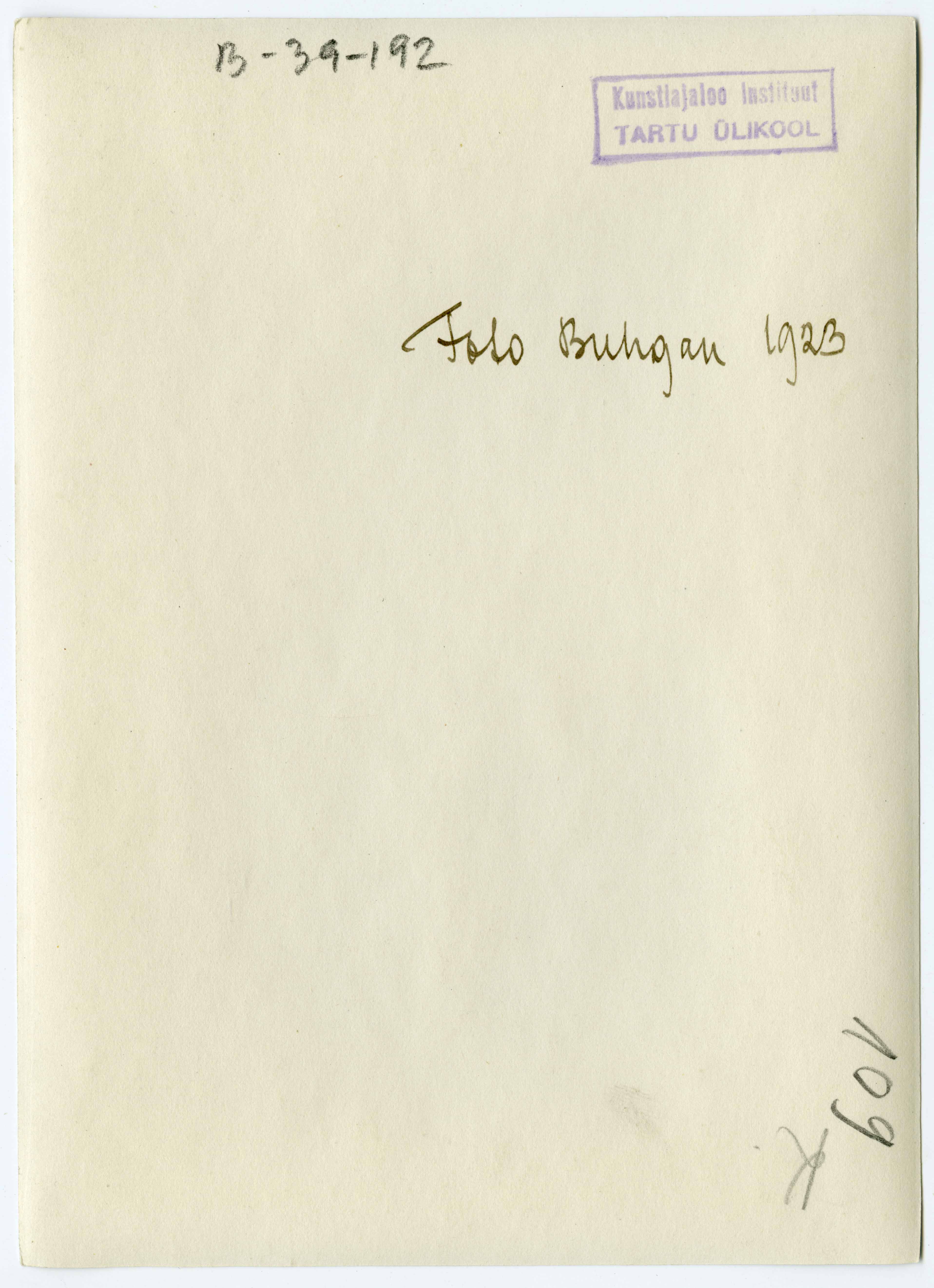 Tekst foto tagaküljel: Arensb. Mus. Foto Buhgan, Arensburg 1922 (negativ im Kunst Inst). Kunst. Inst. Tempel: Kabinett
