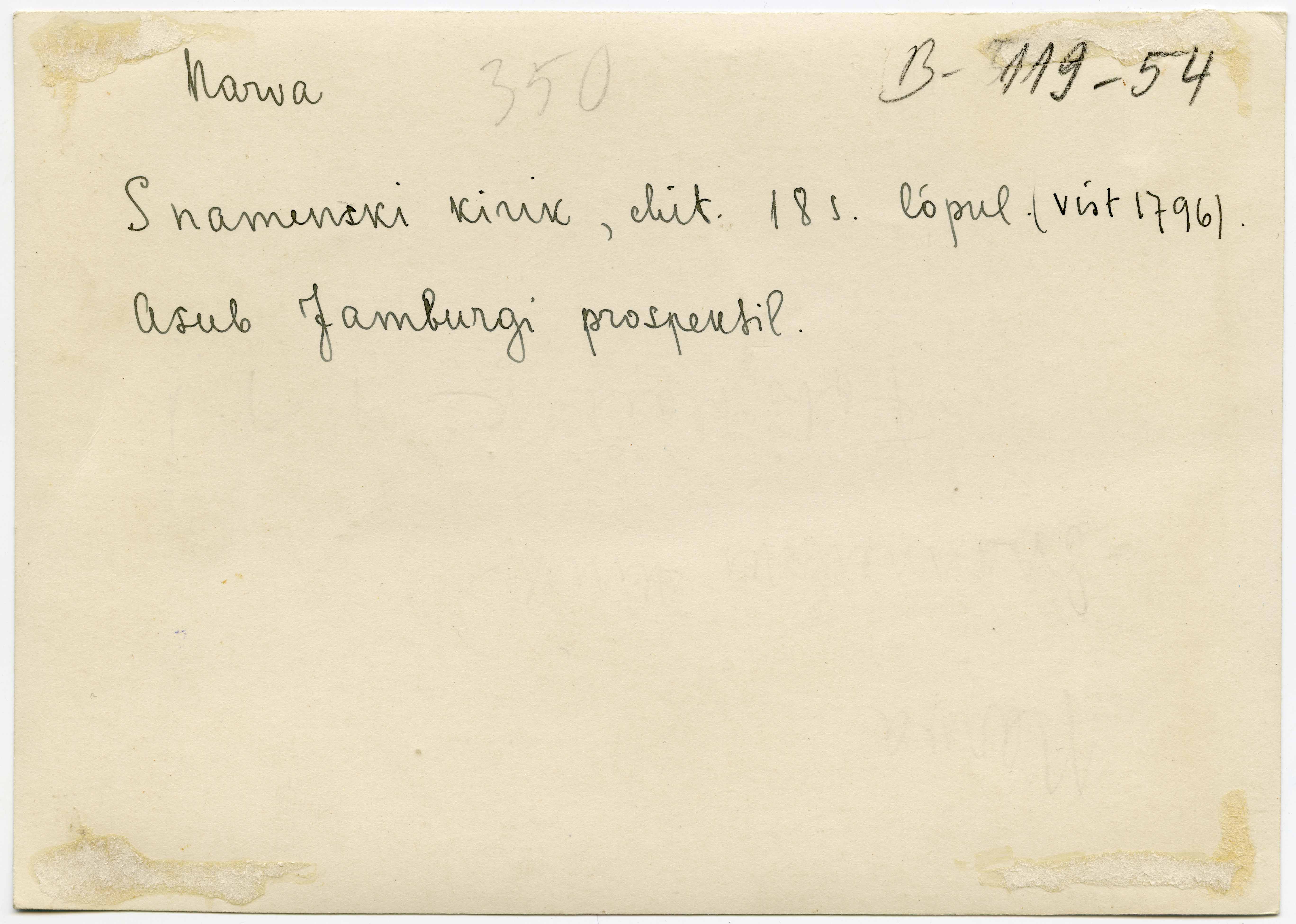 | dc.description | Tekst foto tagaküljel: Narva. Snameski kirik, ehit. 18. s lõpul (vist 1796). Asub Jamburgi prospektil. | et |