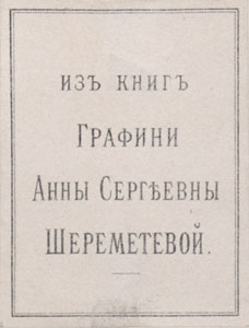 Nelinurkses raamistuses: ИЗЪ КНИГЪ / ГРАФИНИ / АННЫ СЕРГѢЕВНЫ / ШЕРЕМЕТЕВОЙ.