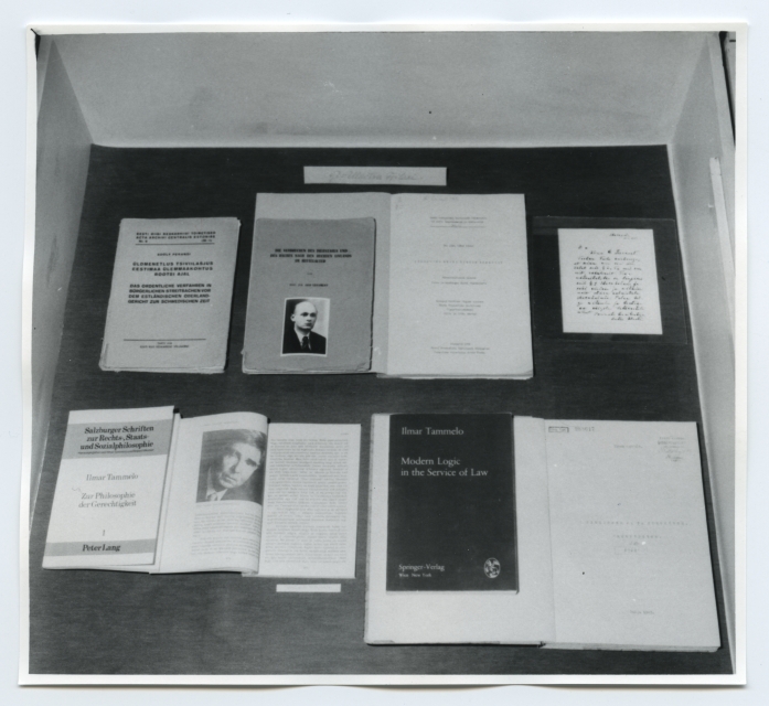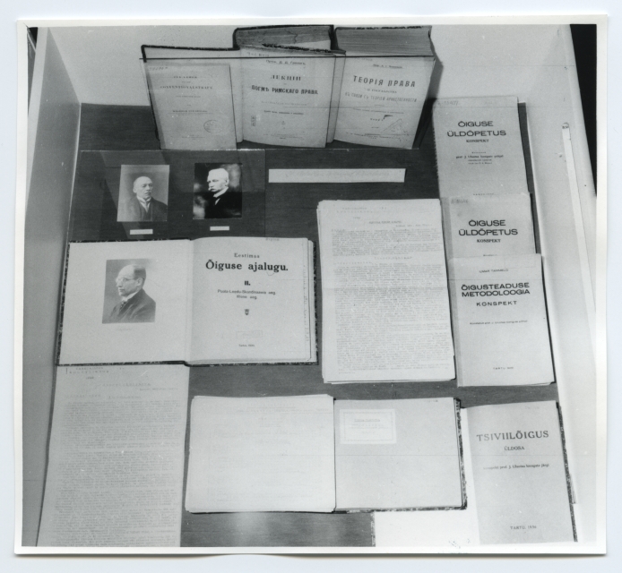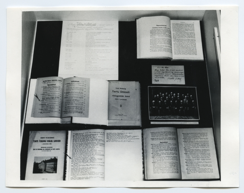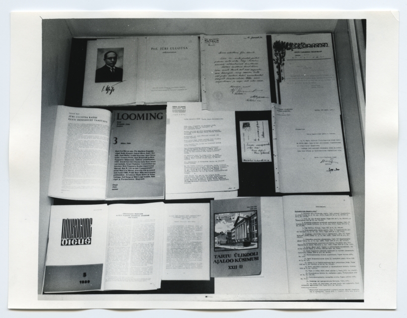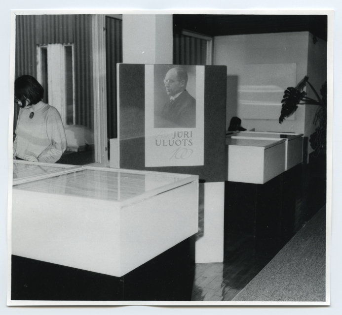 Prof. Jüri Uluotsa 100. sünniaastapäevale pühendatud näitus Tartu ülikooli raamatukogus lugemissaalide fuajees jaanuaris 1990