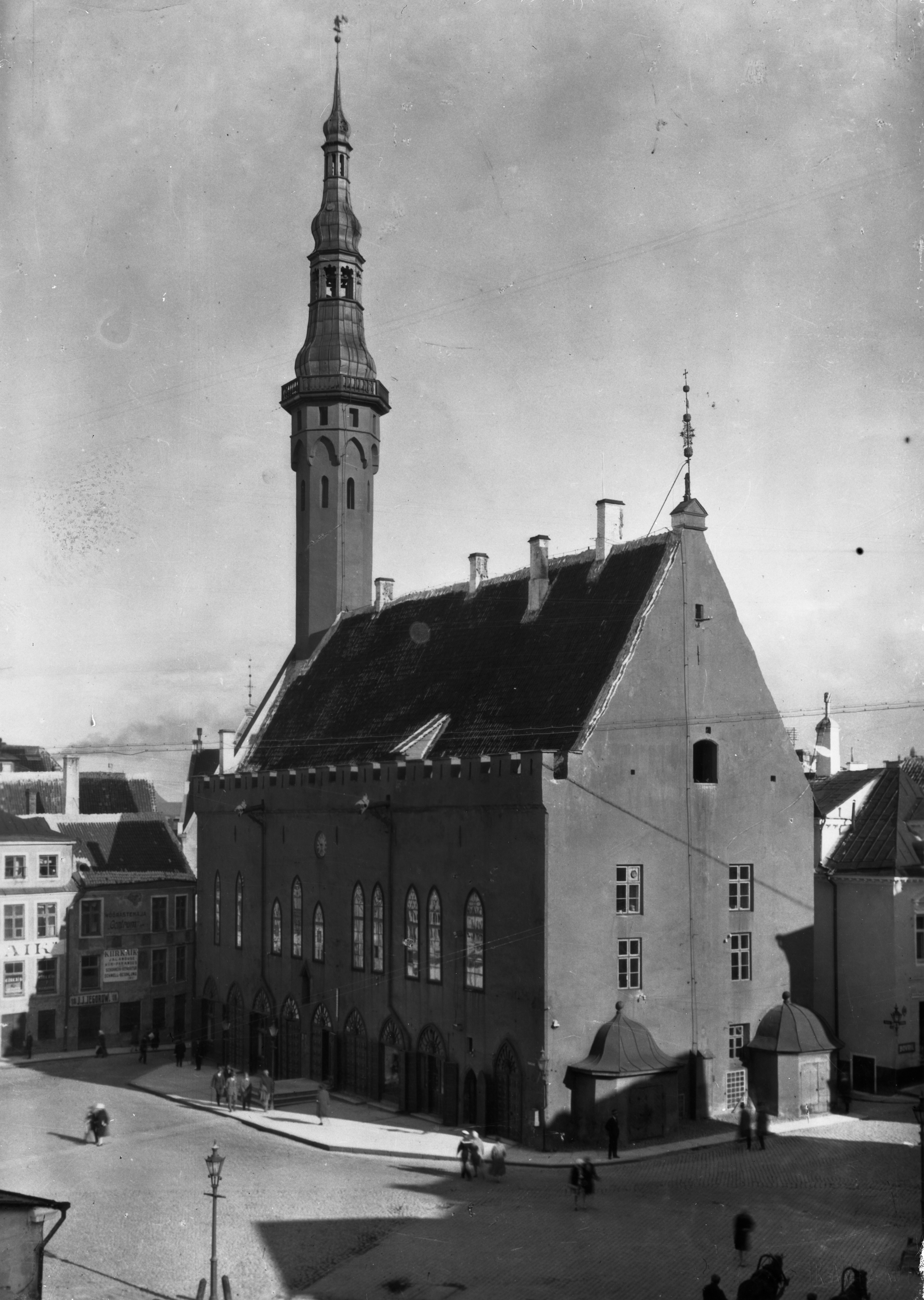 Tallinn. All-linn. Raekoja üldvaade NW-st. Pildistatud Raekoja platsi loodenurgas asuvast majast kolmanda või neljanda korruse kõrguselt
