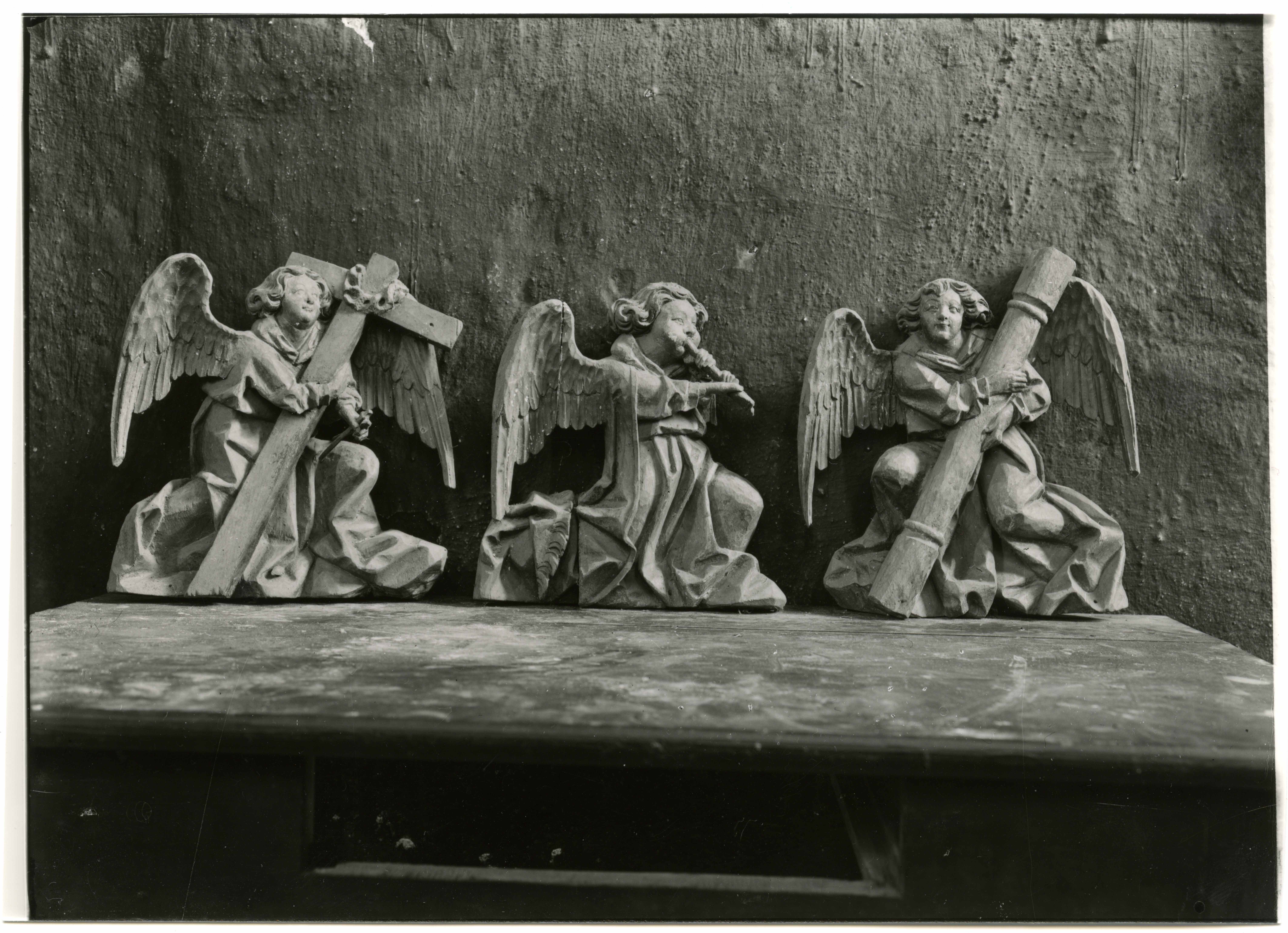 Kaarma Peetri ja Pauli kirik. Sisevaade. Vana altarikapp (1547) lõunalöövis. Inglid passiooniriistadega (16. saj I veerand). Benedikt Dreyer /?/
