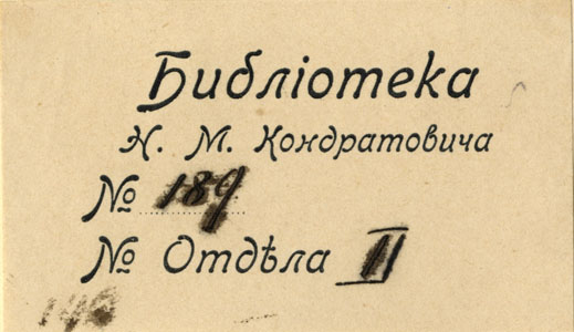 Lehel: Библiотека / Н.М. Кондратовича / № / № Отдѣла