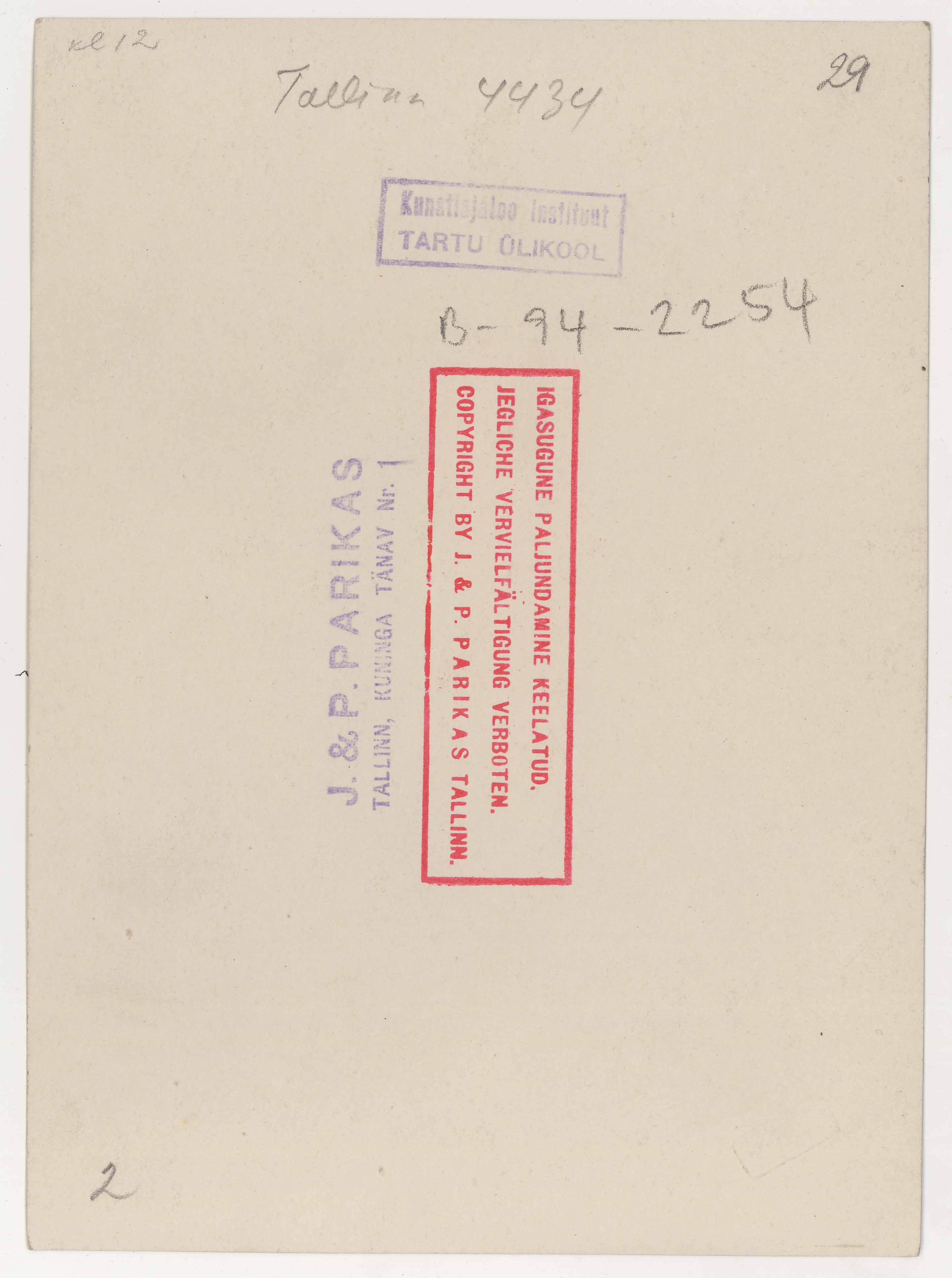 Tekst foto tagaküljel: Tallinn 4434. Templid: Parikas; Instituut