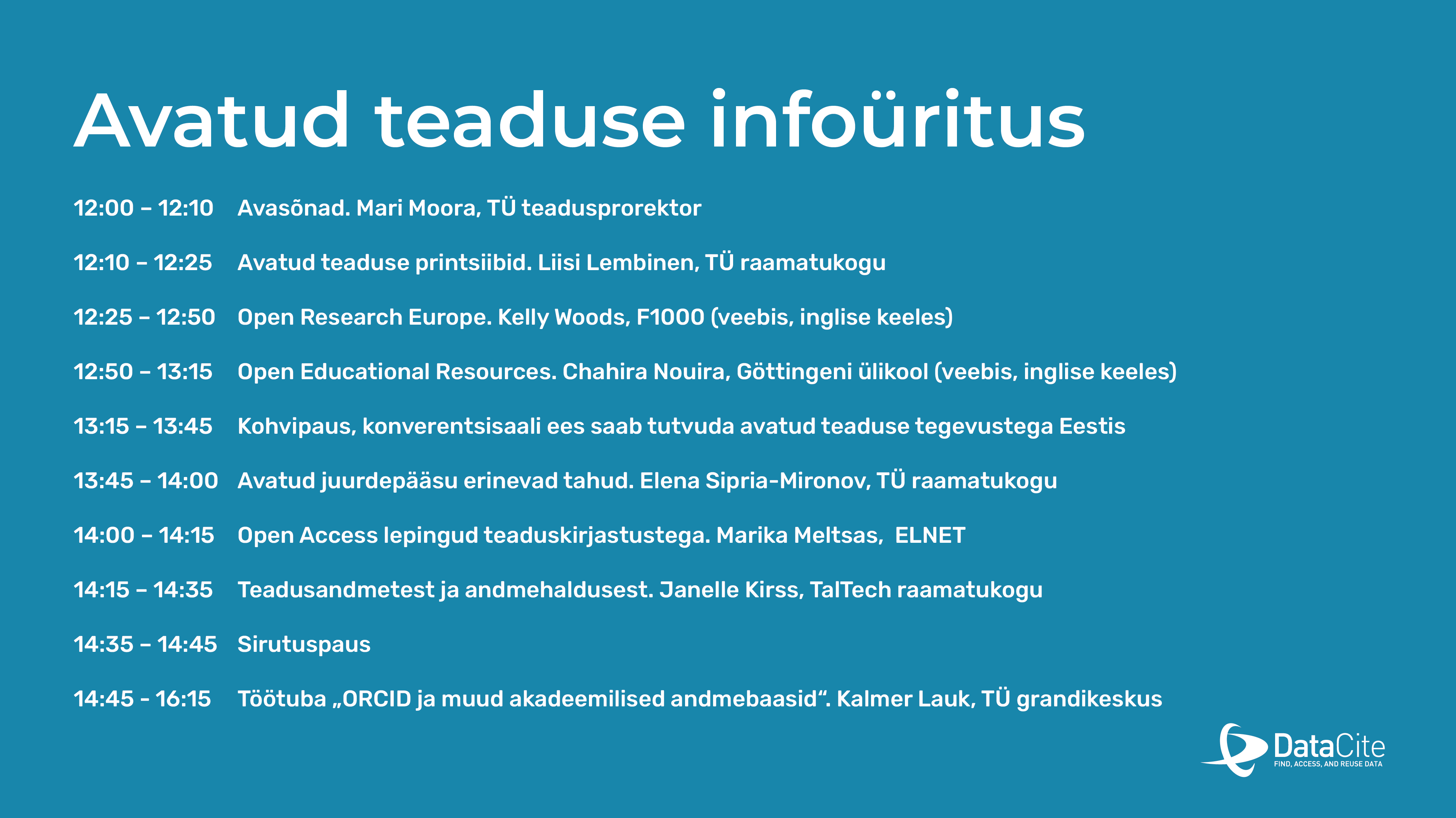 12:10 – 12:25 Avatud teaduse printsiibid. Liisi Lembinen, TÜ raamatukogu arendusdirektor