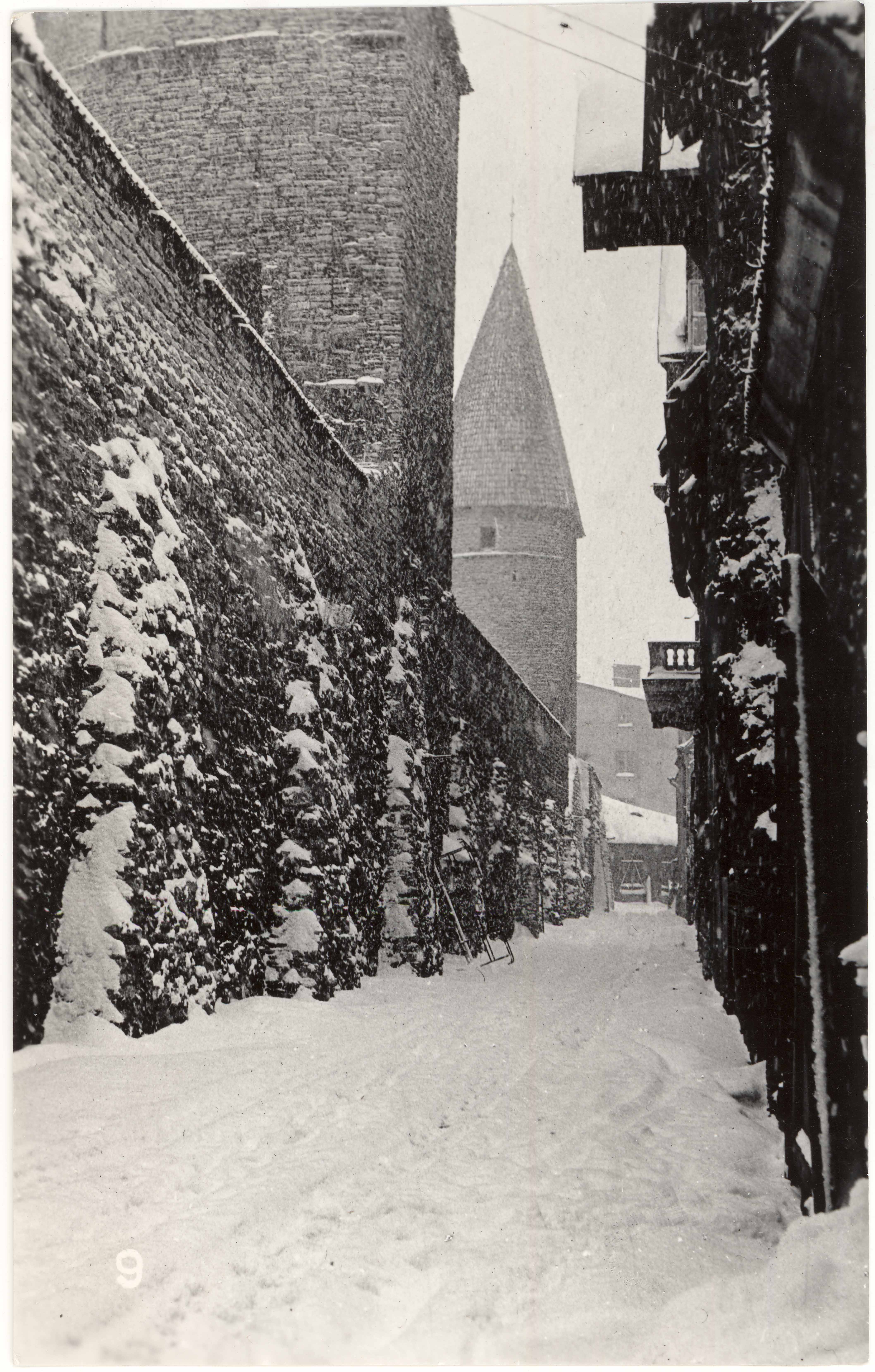 Tallinn. All-linn. Vaade SW-st Laboratooriumi tänavalt Plate torni juurest Eppingi torni alumisele osale ja Grusbeketagusele tornile