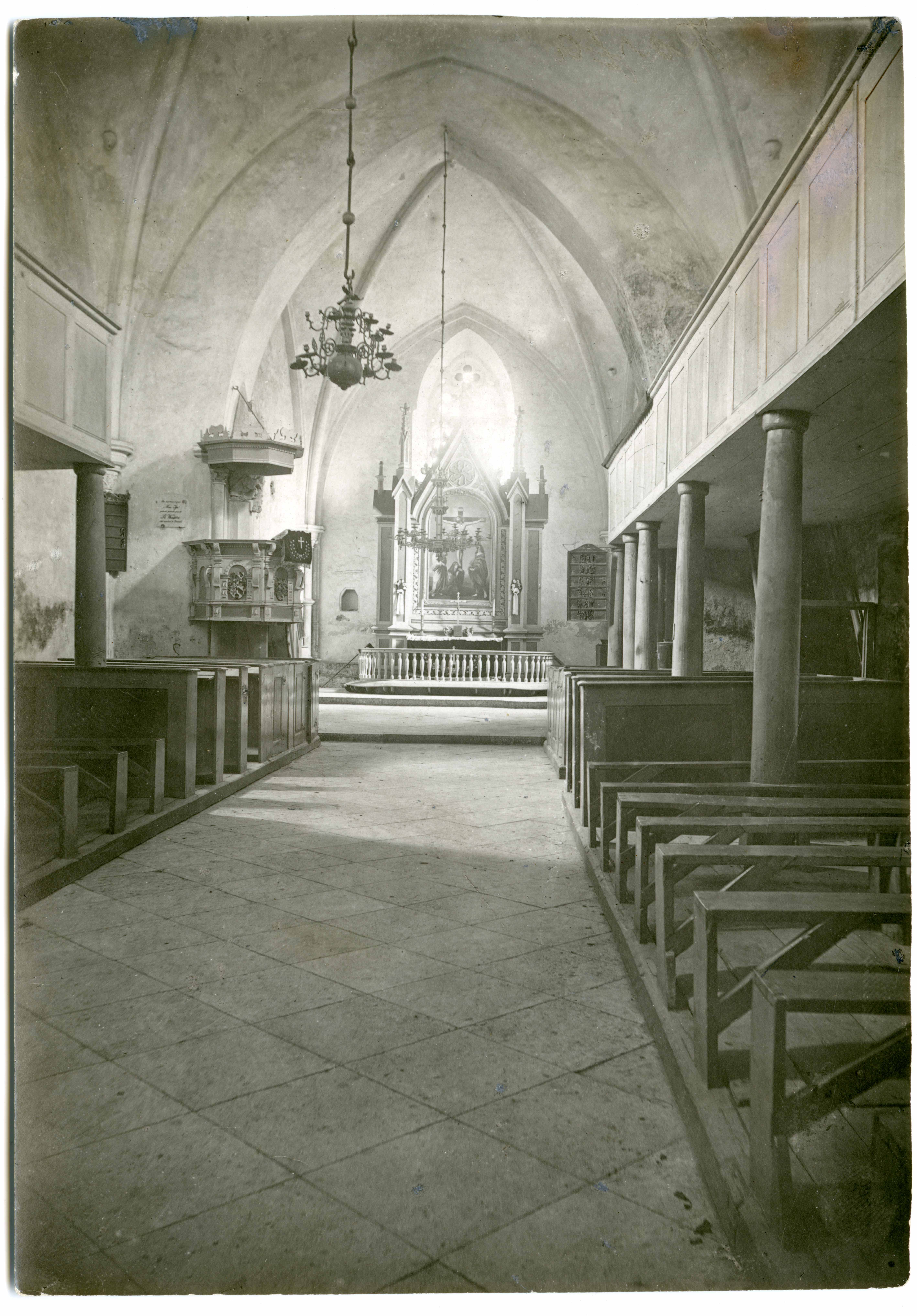 Karja Katariina ja Nikolause kirik. Pikihoone vaade O suunas kooriruumi