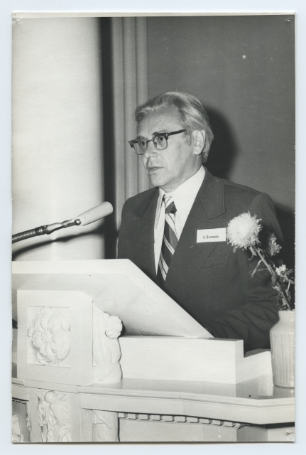 Tartu ülikooli loogika ja psühholoogia kateedri dotsent Uno Siimann Tartu ülikooli aulas kõnetoolis