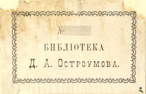 Nelinurkses ornamenteeritud raamistuses: № / БИБЛIОТЕКA / Д. А. Остроумова.