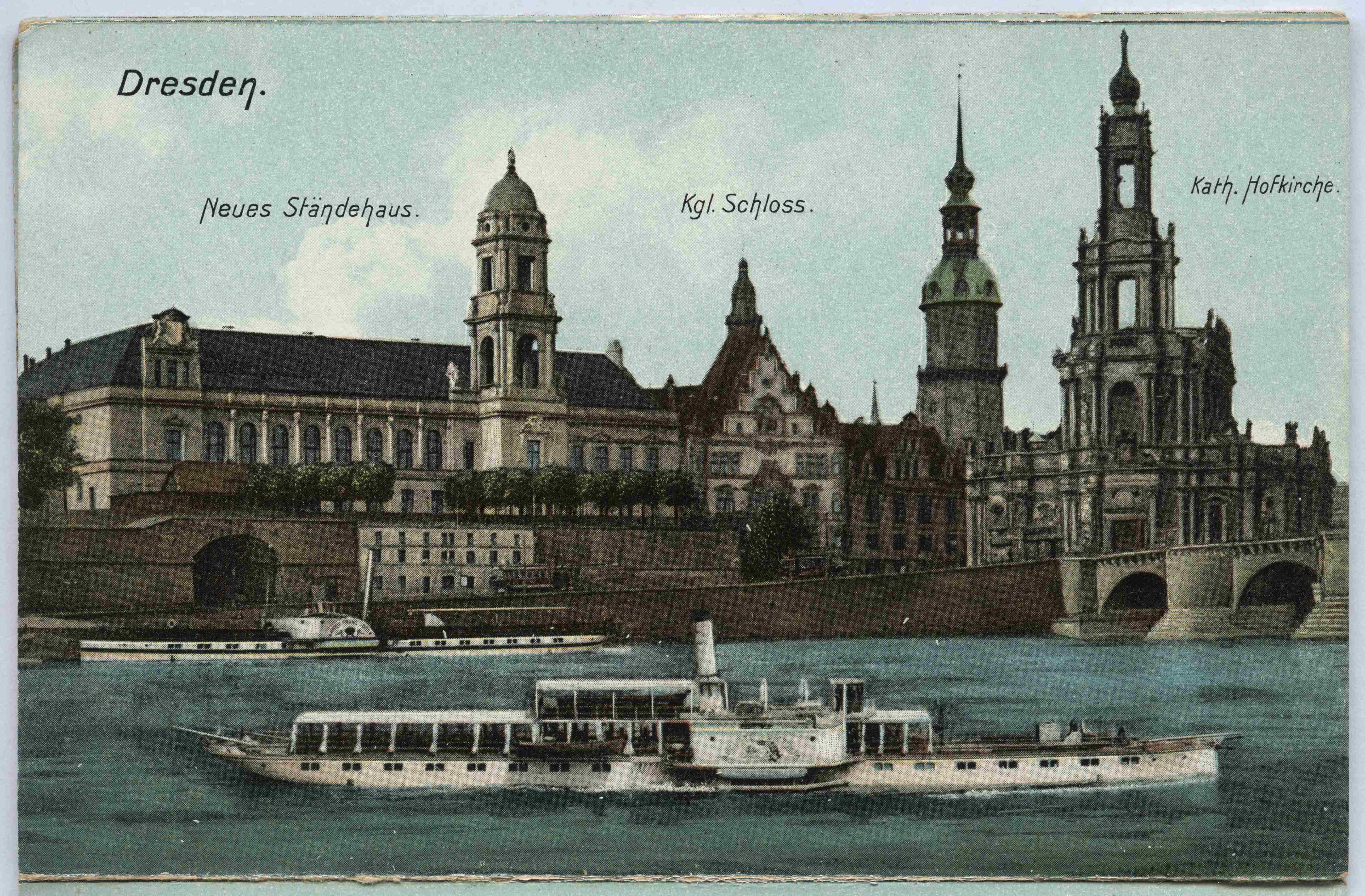 38. Näitusepalee; 39. Suur aed. Peaallee; 40. Hauptstrasse (peatänav) vahtkonnaparaadiga; 41. Pearaudteejaam; 42. Uus ministeerium; 43. Neumarkt ja Frauenkirche; 44. Altmarkti väljak; 45. Brühli terrassile viiv trepp; 46. Zwingeri tiik; 47. Seisustemaja ja kuningas Alberti mälestussammas; 48. Vaade Weberi hotellist; 49. Zwinger; 50. Kuningaloss; 51. Katoliiklik õukonnakirik ja kuningaloss; 52. Vaade Brühli terrassilt; 53. Seisustemaja, kuningaloss ja katoliiklik õukonnakirik; 54. Vaade Maarja sillalt (Marienbrücke); 55.-57. Linnavaated