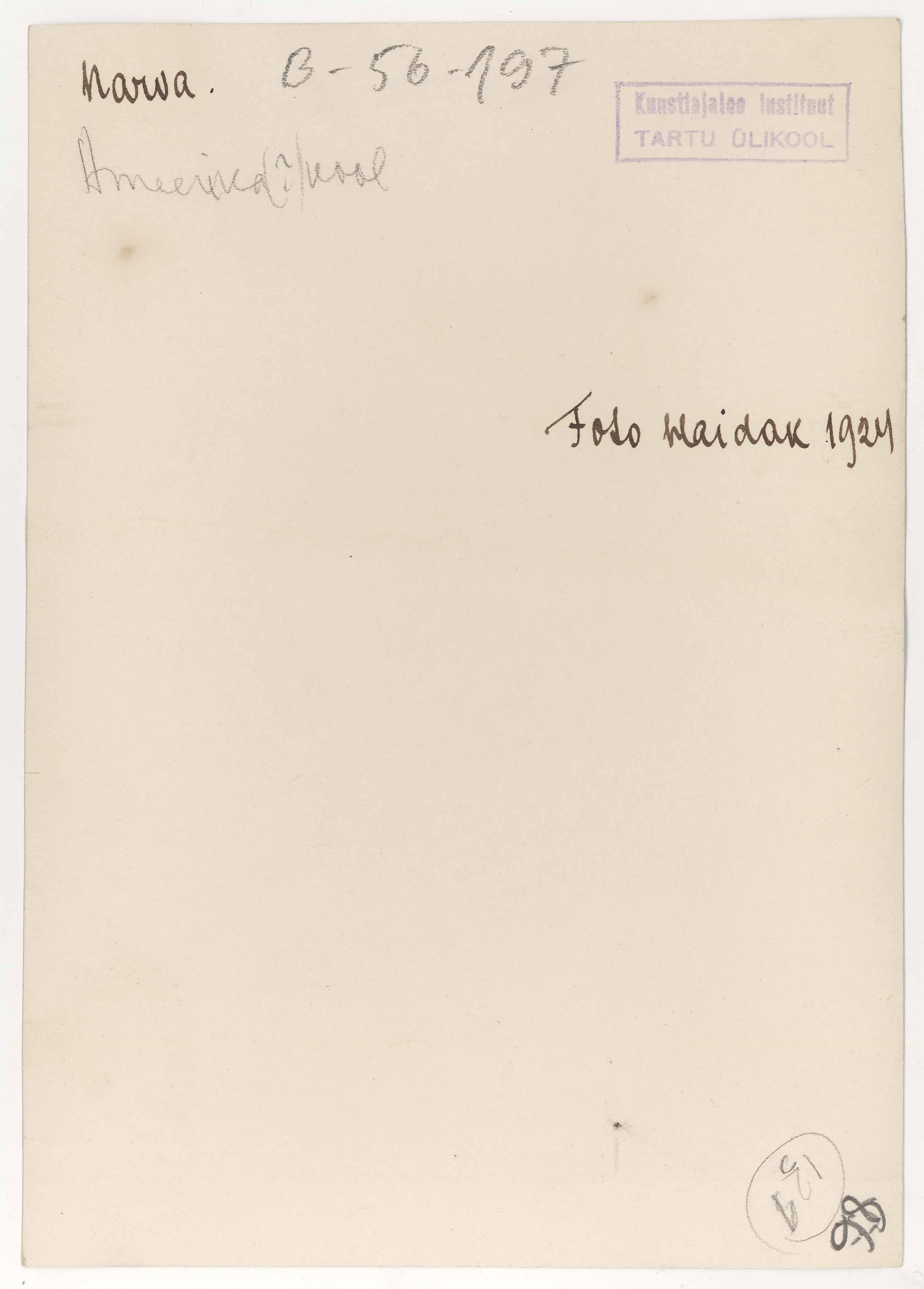 Tekst foto tagaküljel: Narva. Foto Haidak 1924. Ameerika (?) kool. Tempel: Instituut