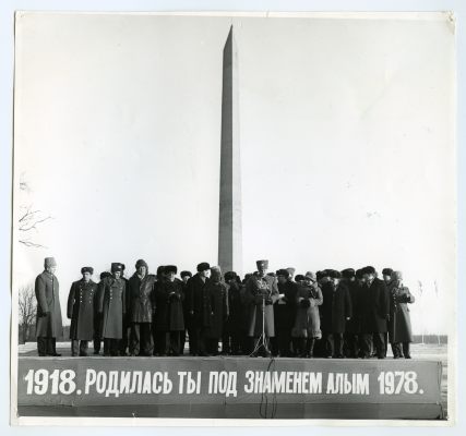 ELKNÜ Tartu Riikliku Ülikooli Keskkomitee delegatsioon Pihkvas Nõukogude Armee 60. aastapäeva miitingul