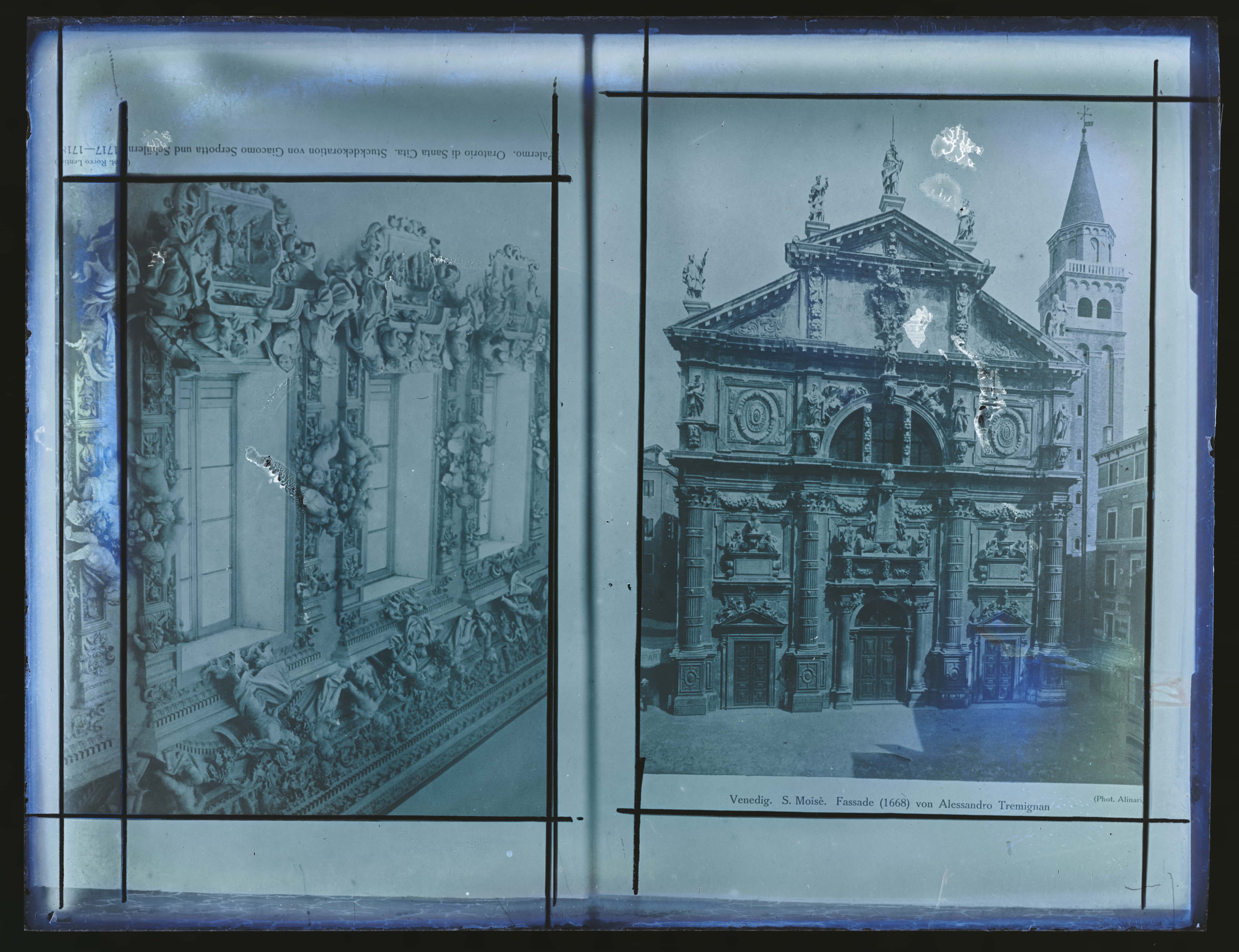 Itaalia. 1. Palermo. Oratorio di Santa Cita stukkdekoor. 2. Veneetsia. St. Moise fassaad