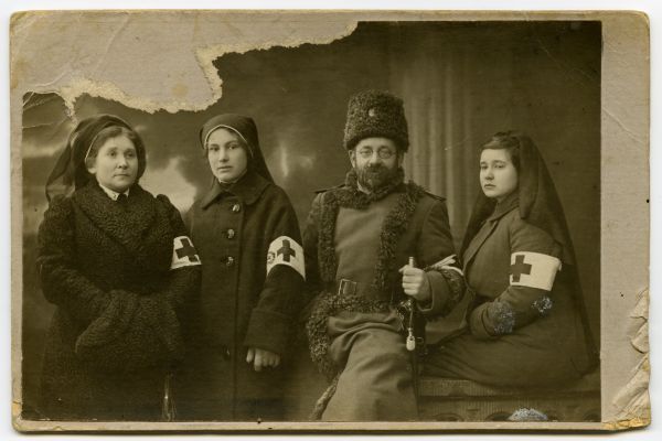 Mihhail Rostovtsev perekonnaga. Sõjaväearstina puhkusel Tartus. 1915