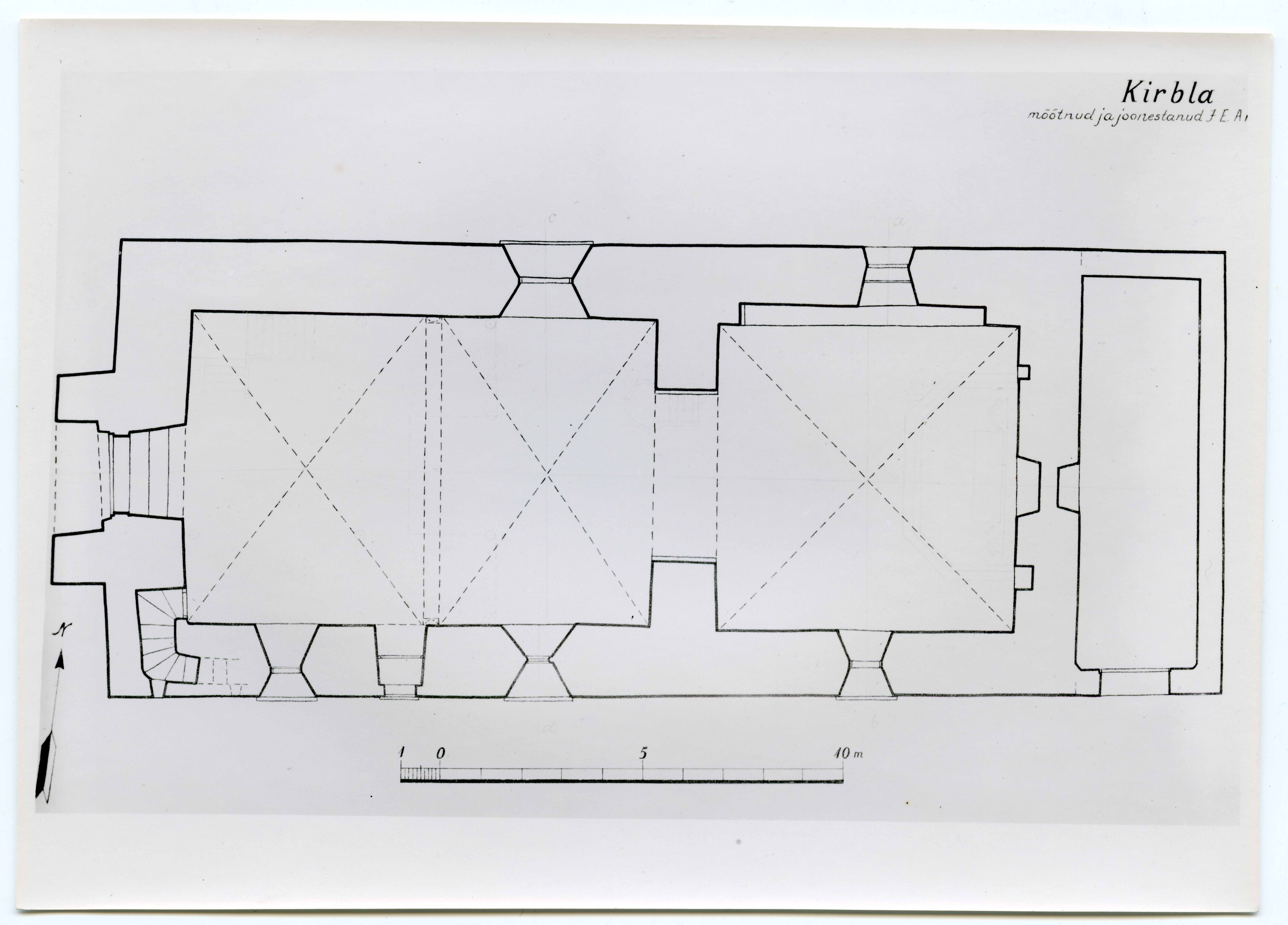 Kirbla Nigula kirik. Põhiplaan. Mõõtnud ja joonestanud J. E. Armolik 1943.a.