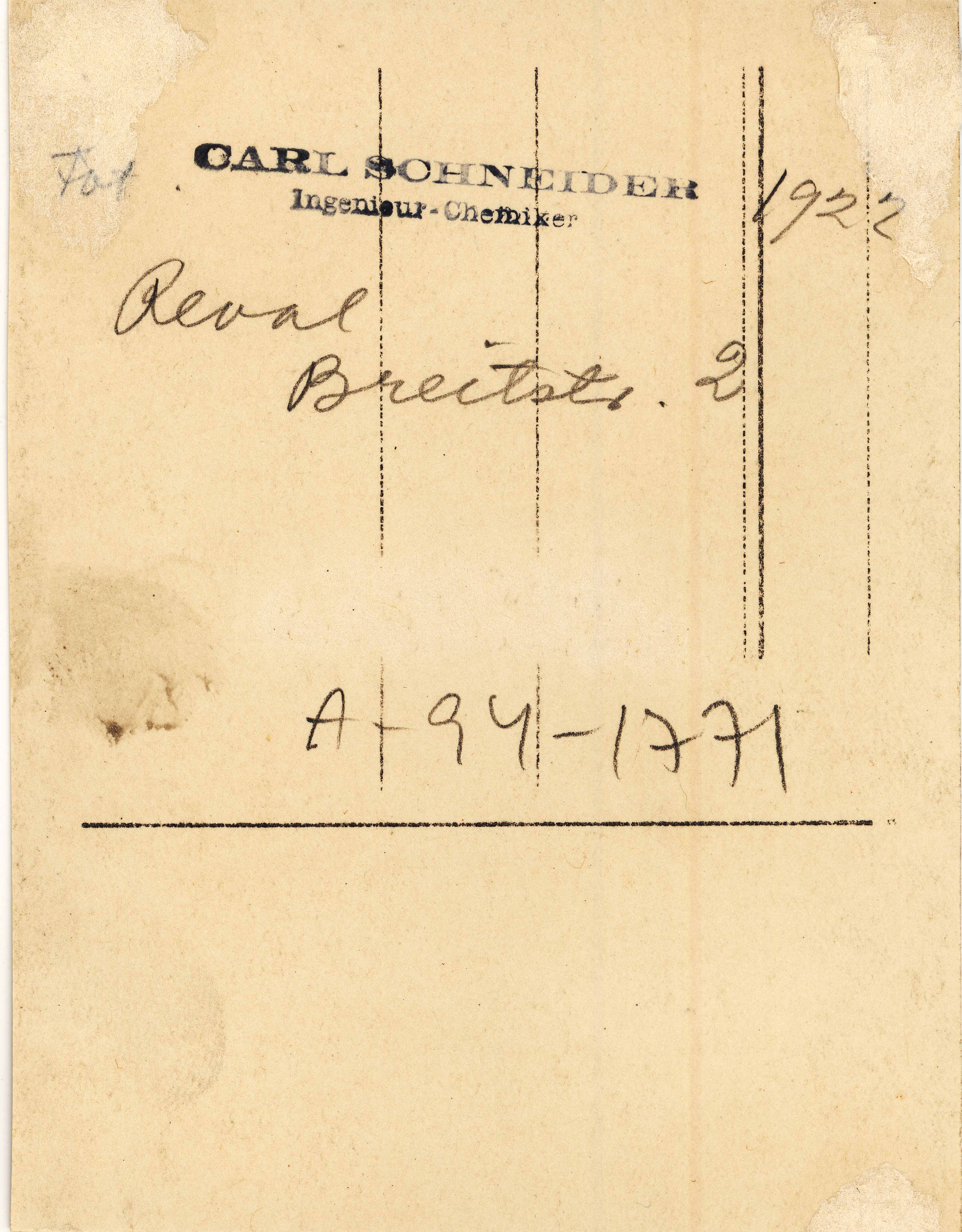 Tekst foto tagaküljel: 1922. Reval. Breitstr. 2. Tempel: Schneider